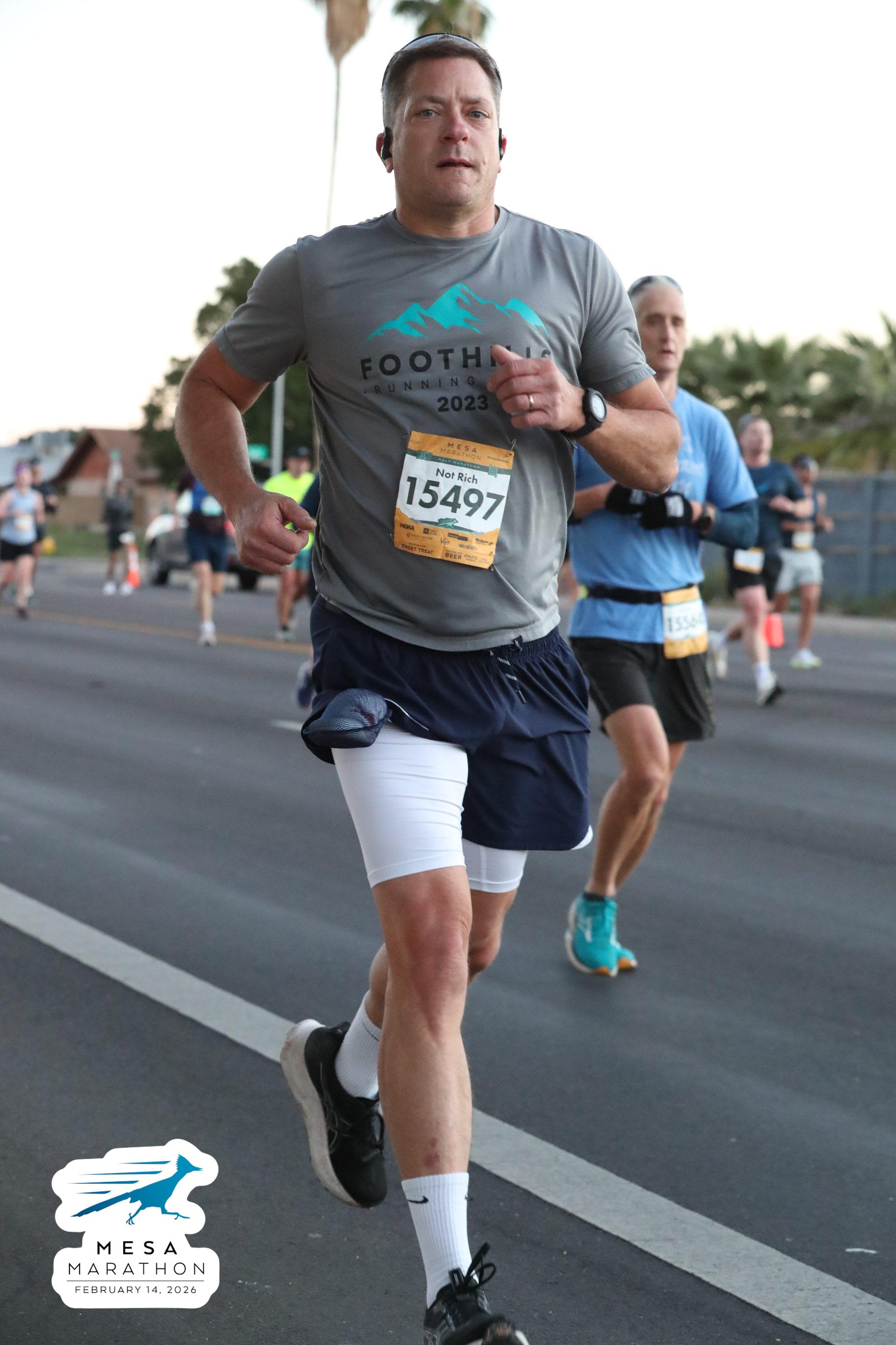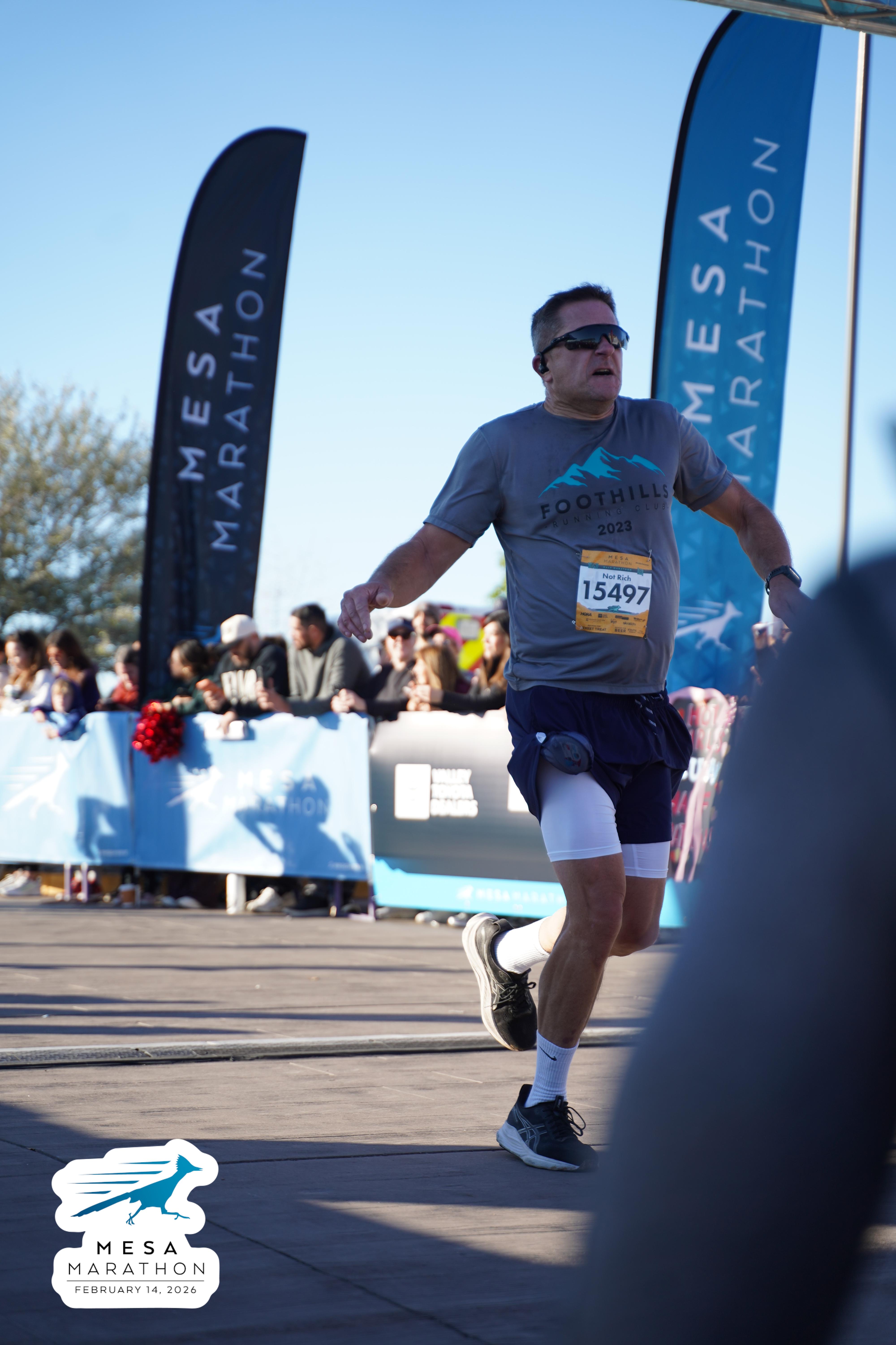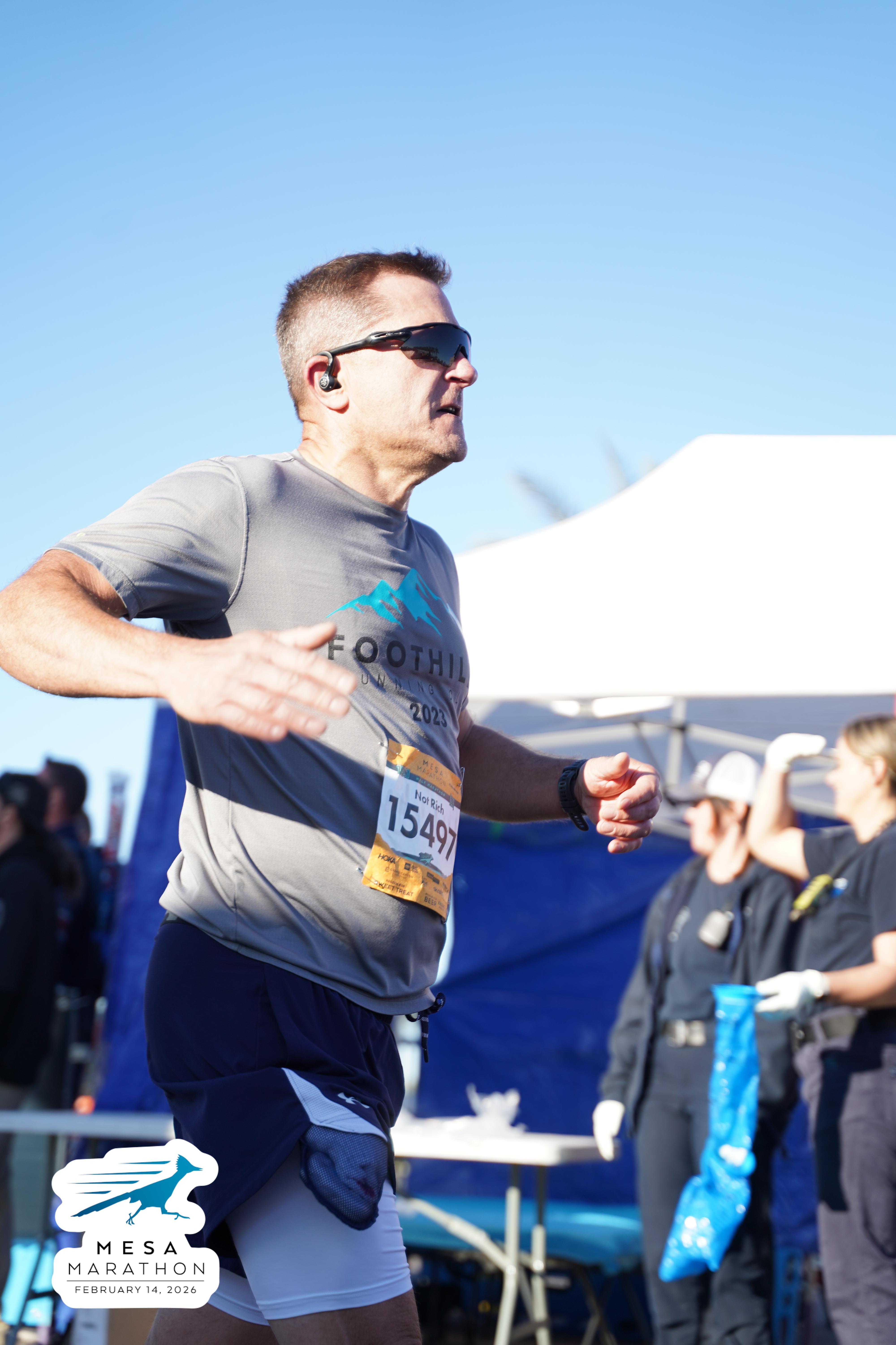 Date: Feb. 14, 2026 Participant: Rich Gray #15497 Race: 2026 Mesa Half Marathon Distance: 13.1 miles