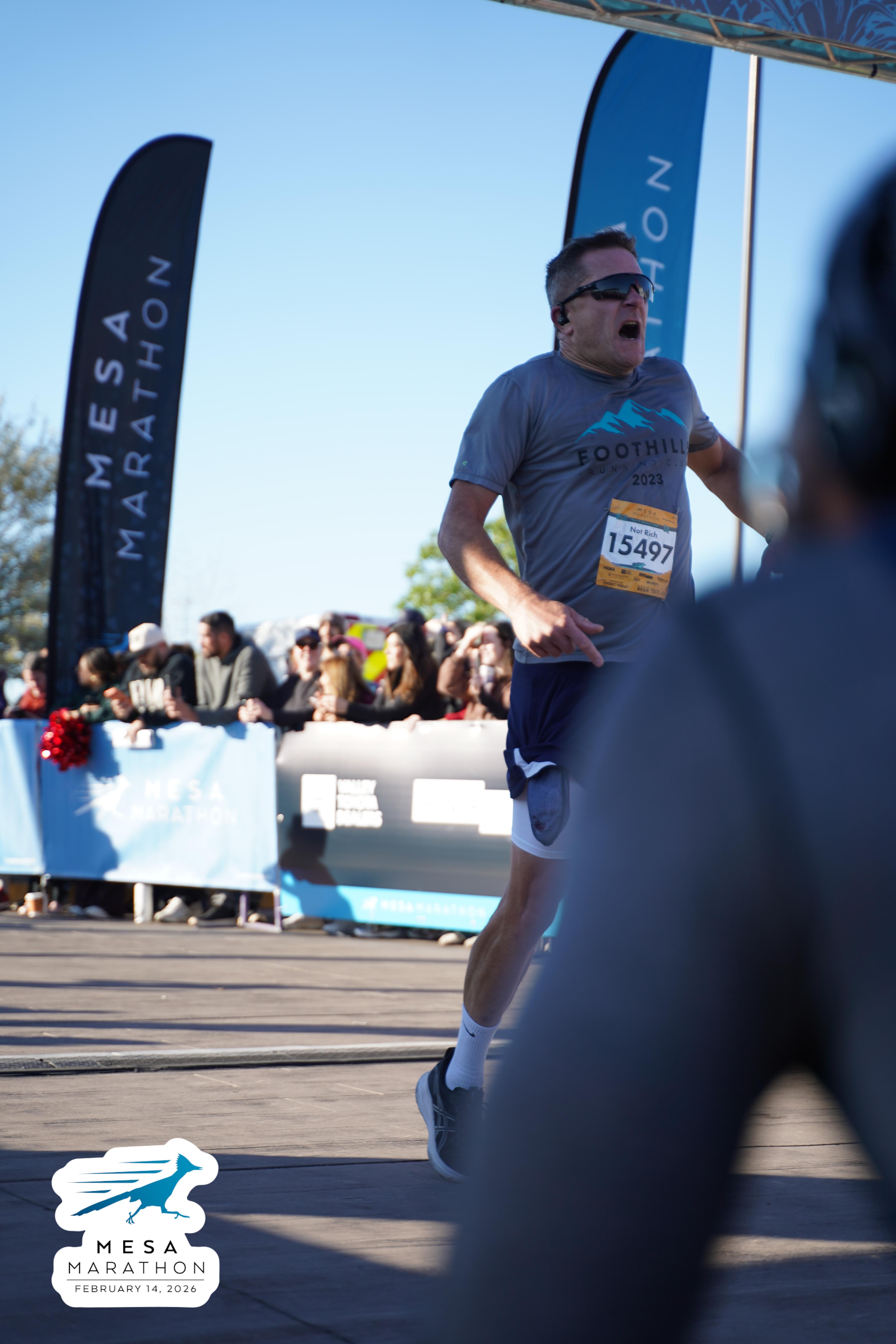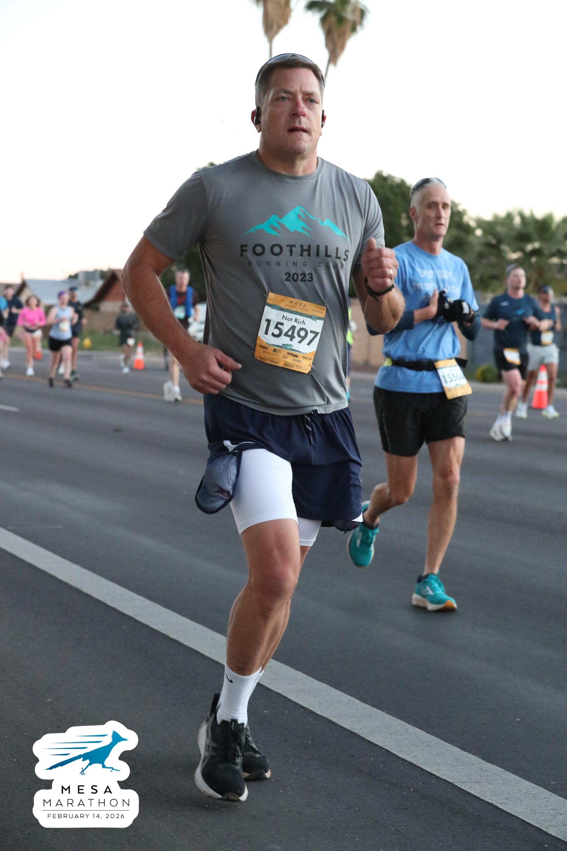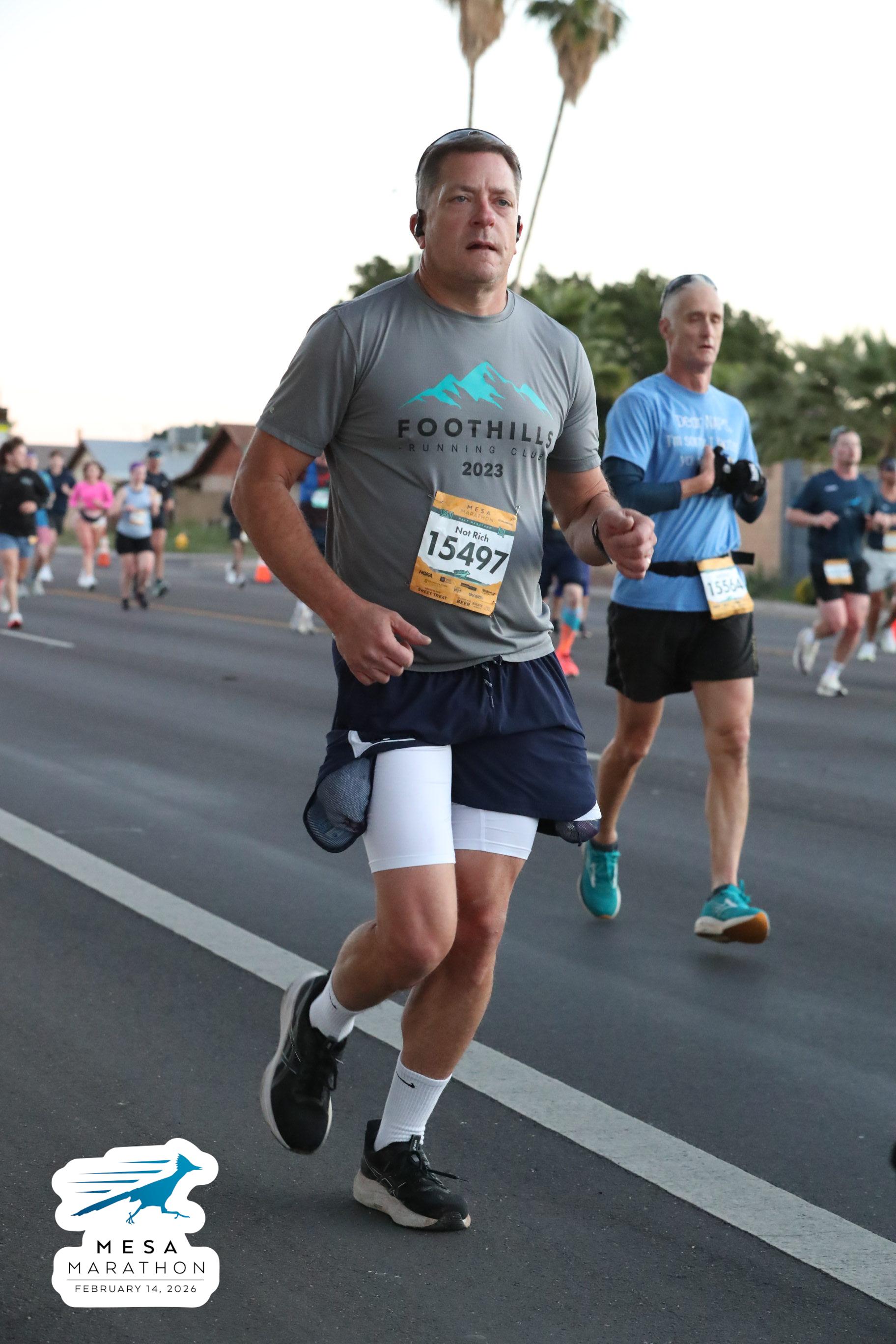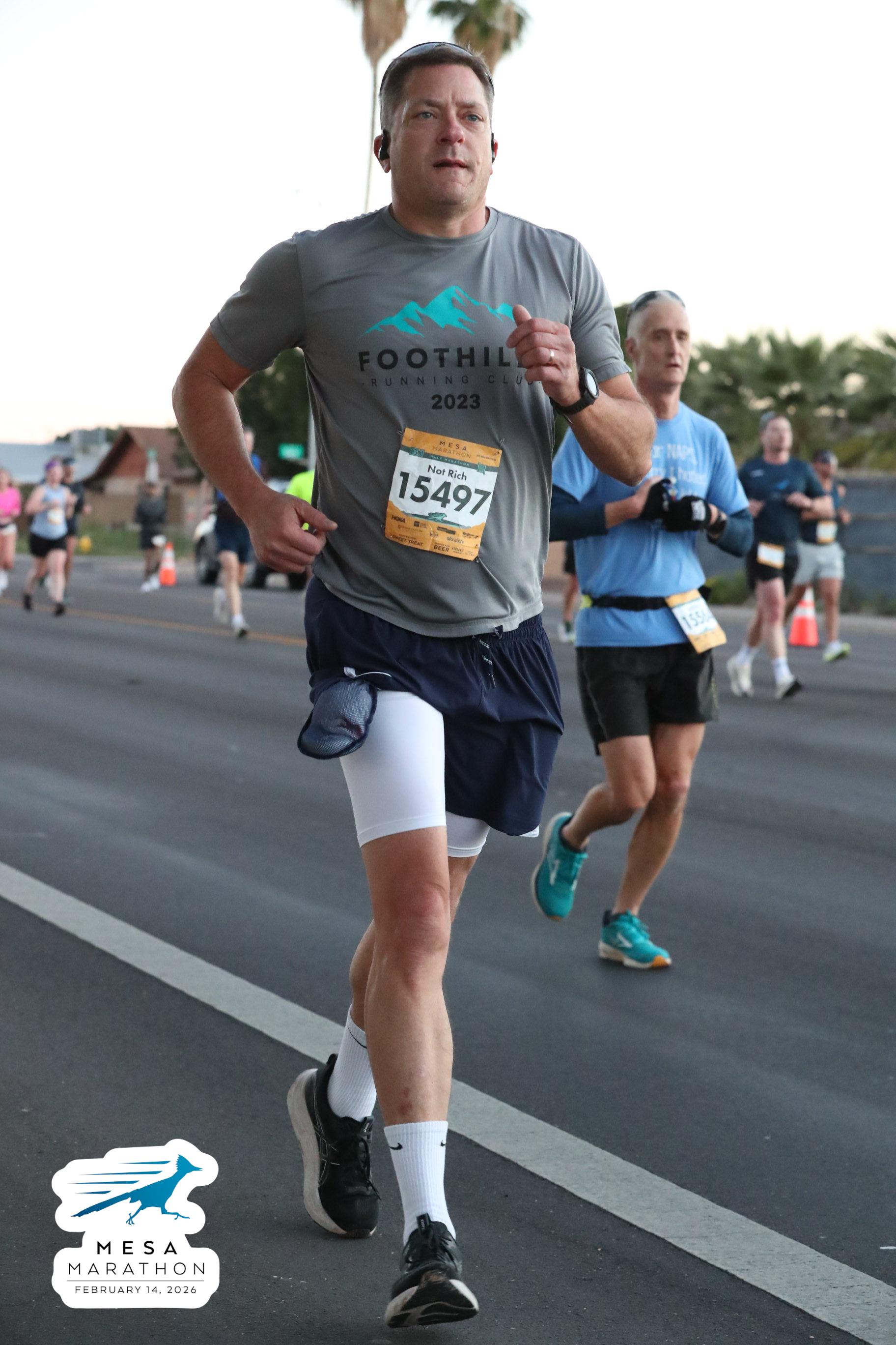 Date: Feb. 14, 2026 Participant: Rich Gray #15497 Race: 2026 Mesa Half Marathon Distance: 13.1 miles