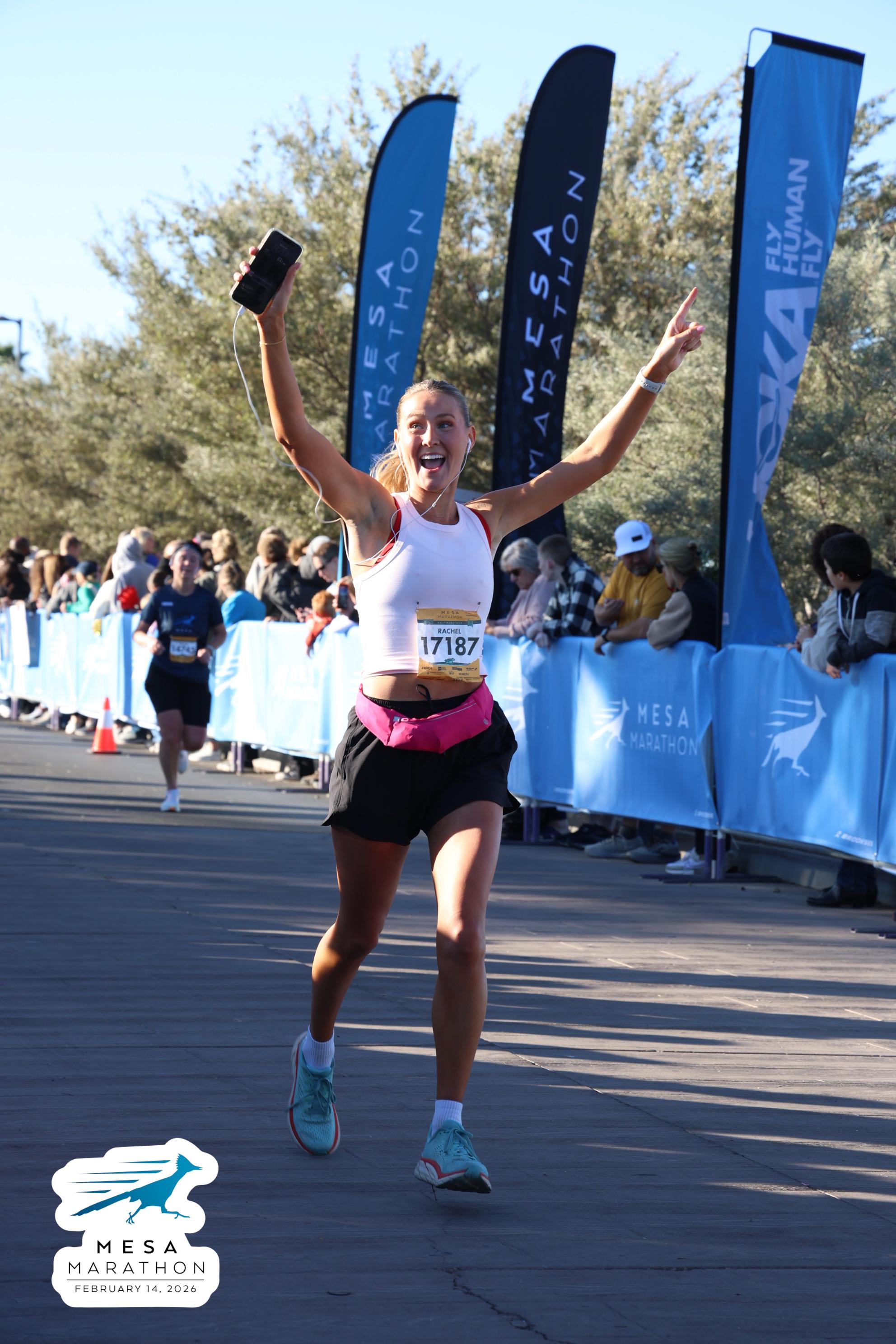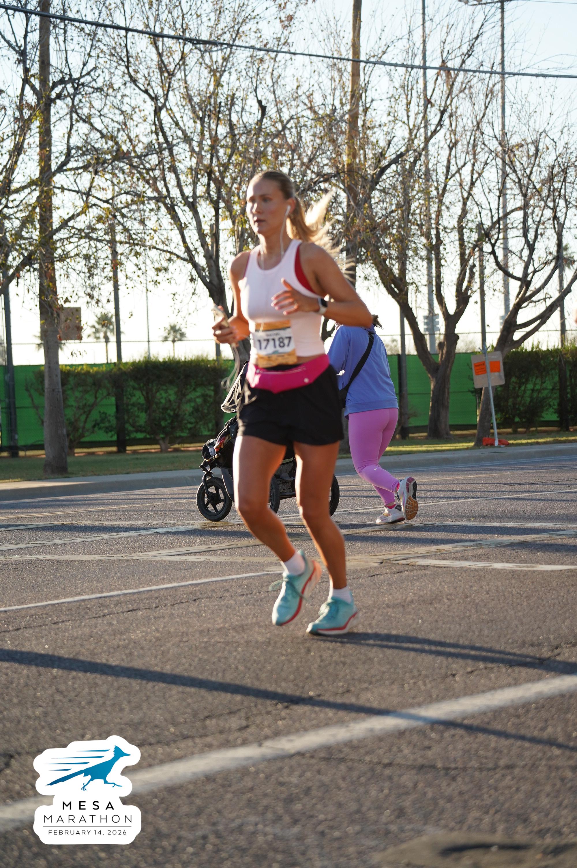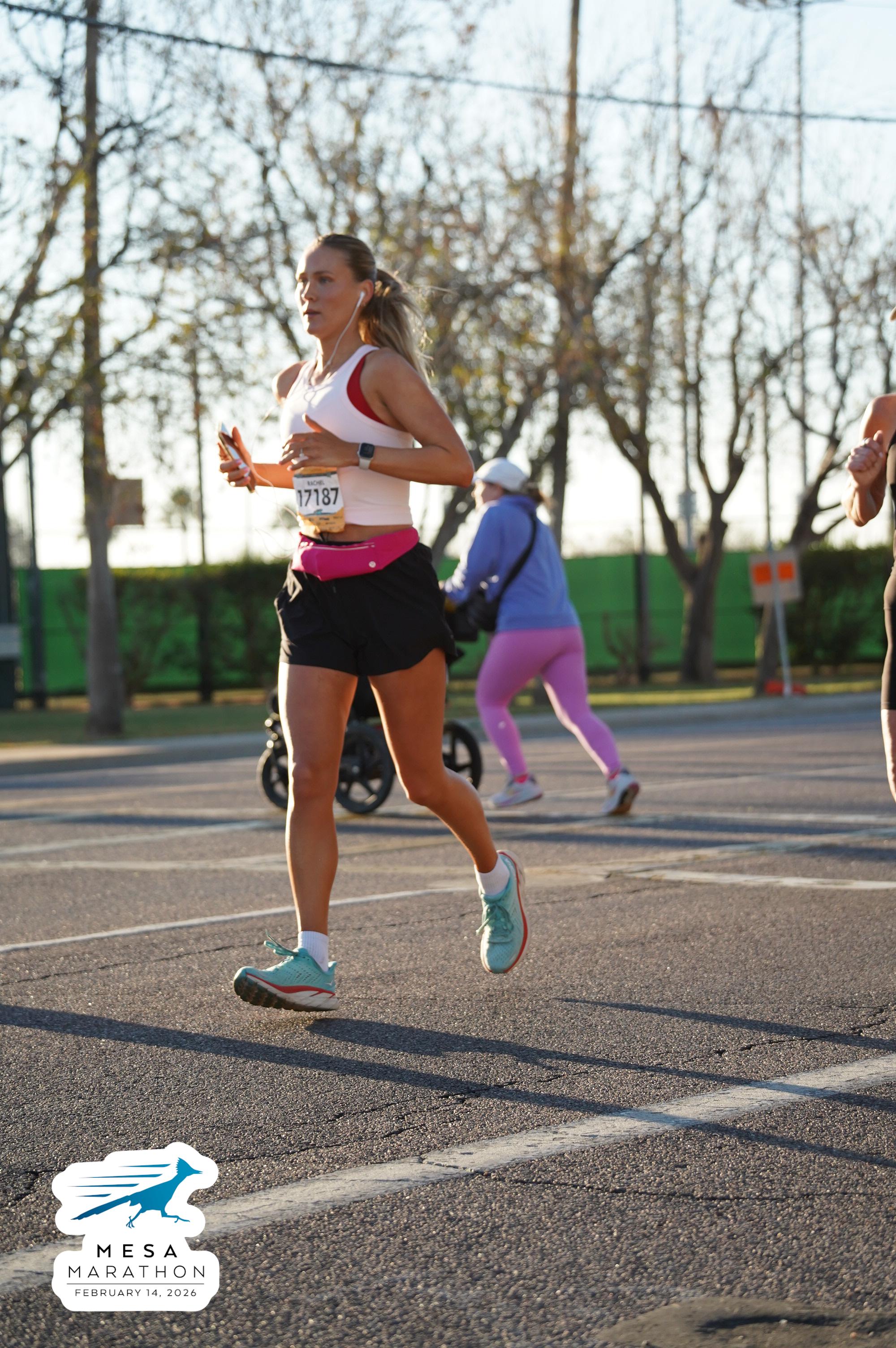 Date: Feb. 14, 2026 Participant: Rachel Skousen #17187 Race: 2026 Mesa Half Marathon Distance: 13.1 miles