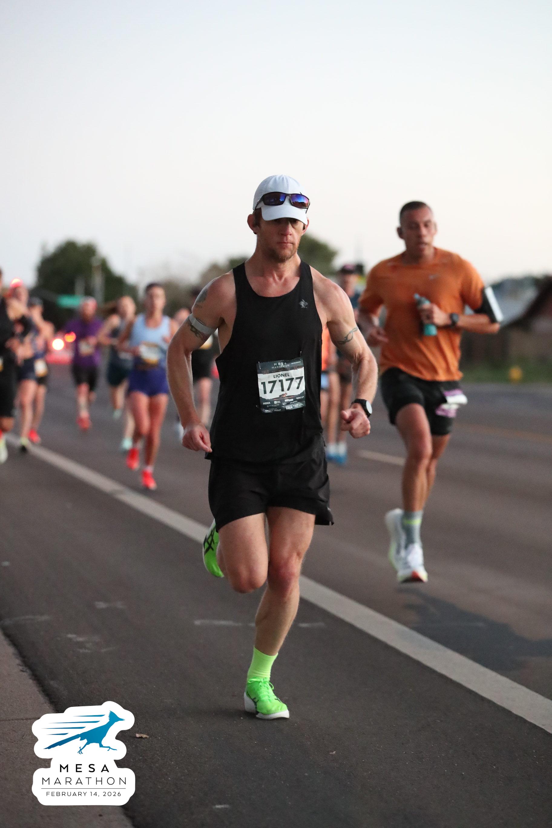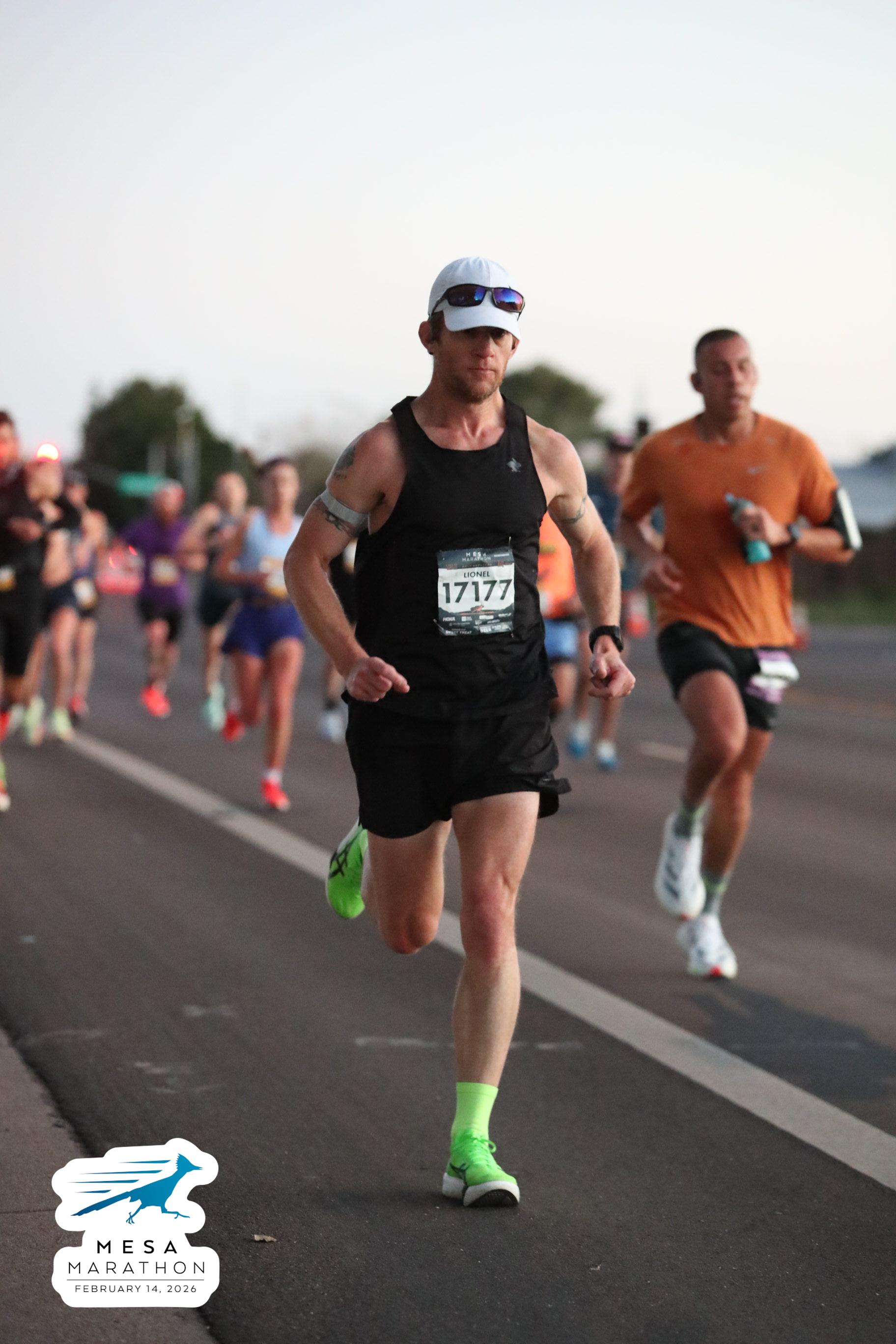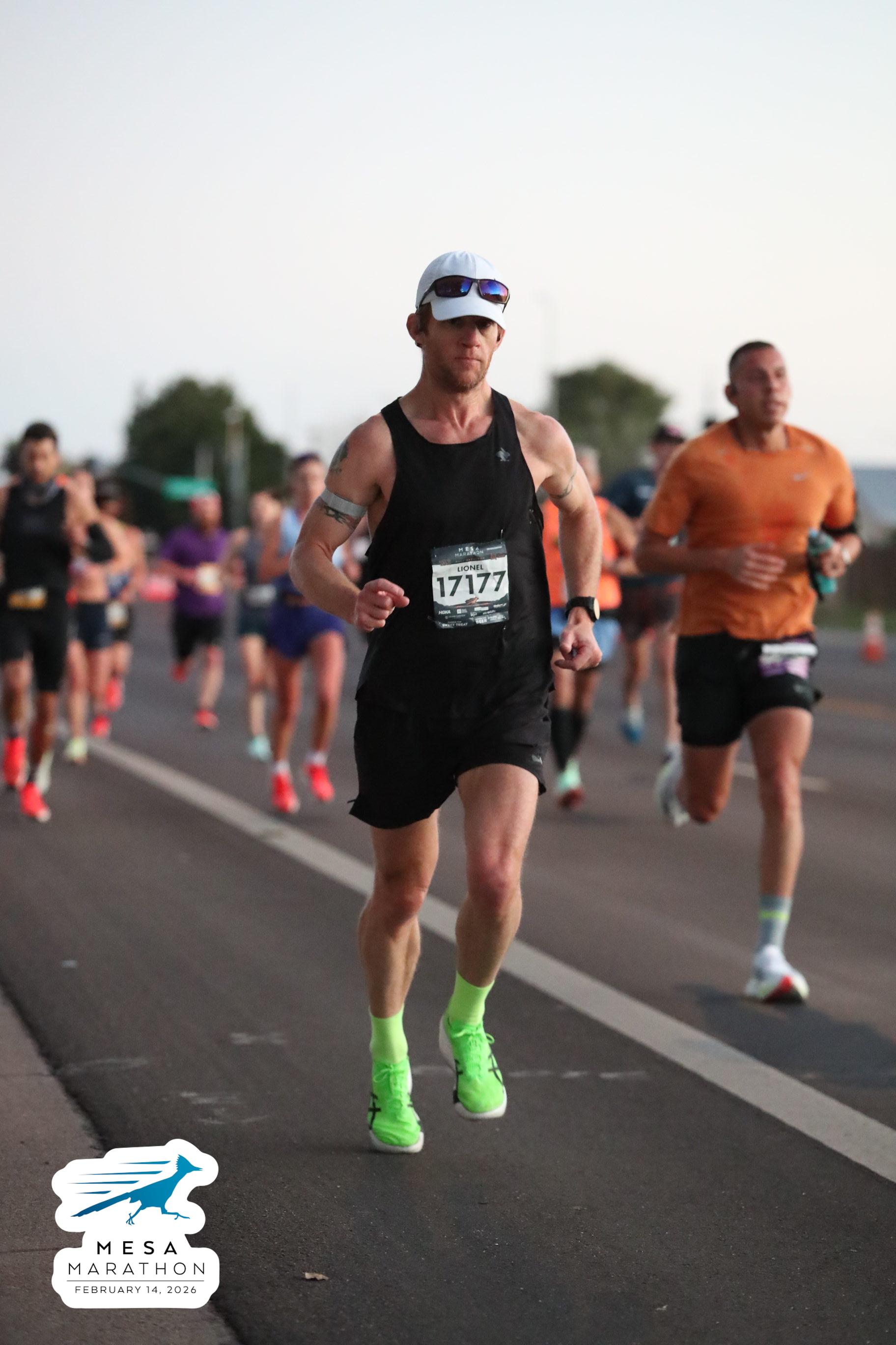 Date: Feb. 14, 2026 Participant: Lionel Silverston #17177 Race: 2026 Mesa Half Marathon Distance: 13.1 miles