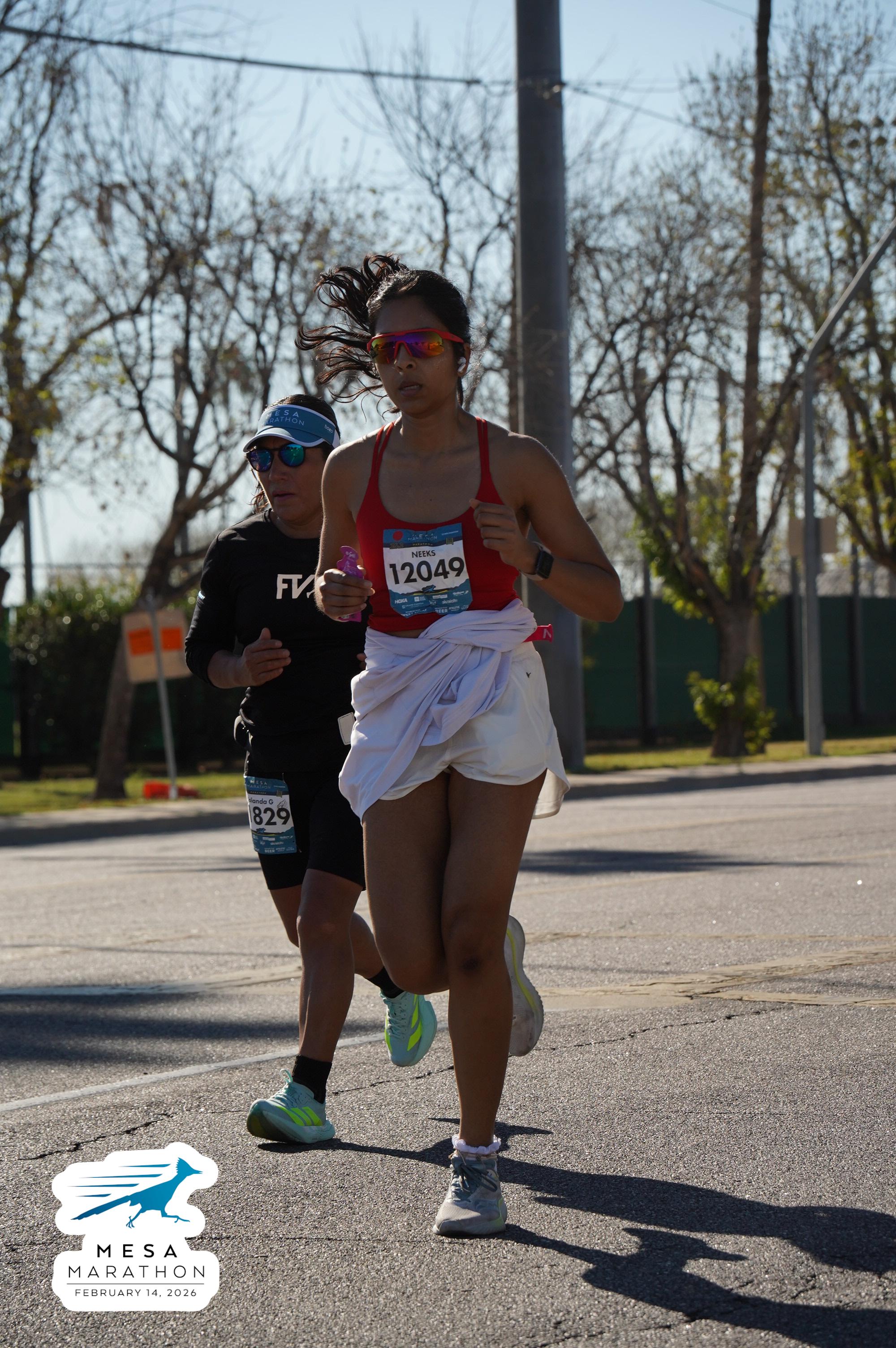 Date: Feb. 14, 2026 Participant: Annika Hiredesai #12049 Race: 2026 Mesa Marathon Distance: 26.2 miles