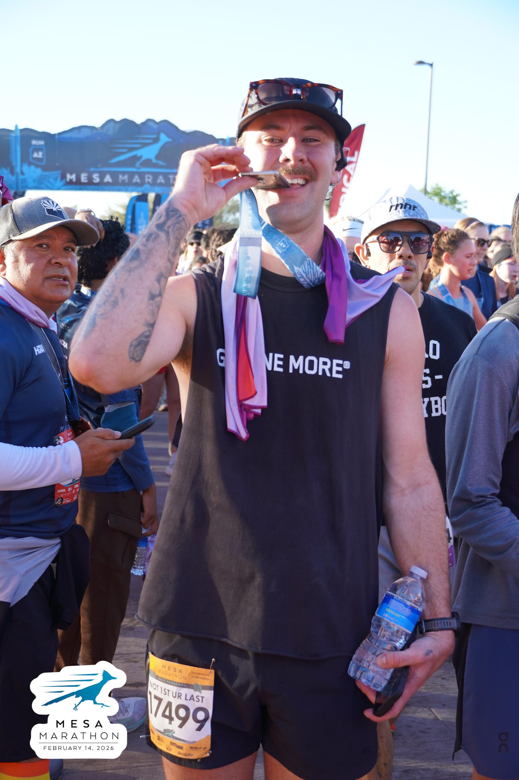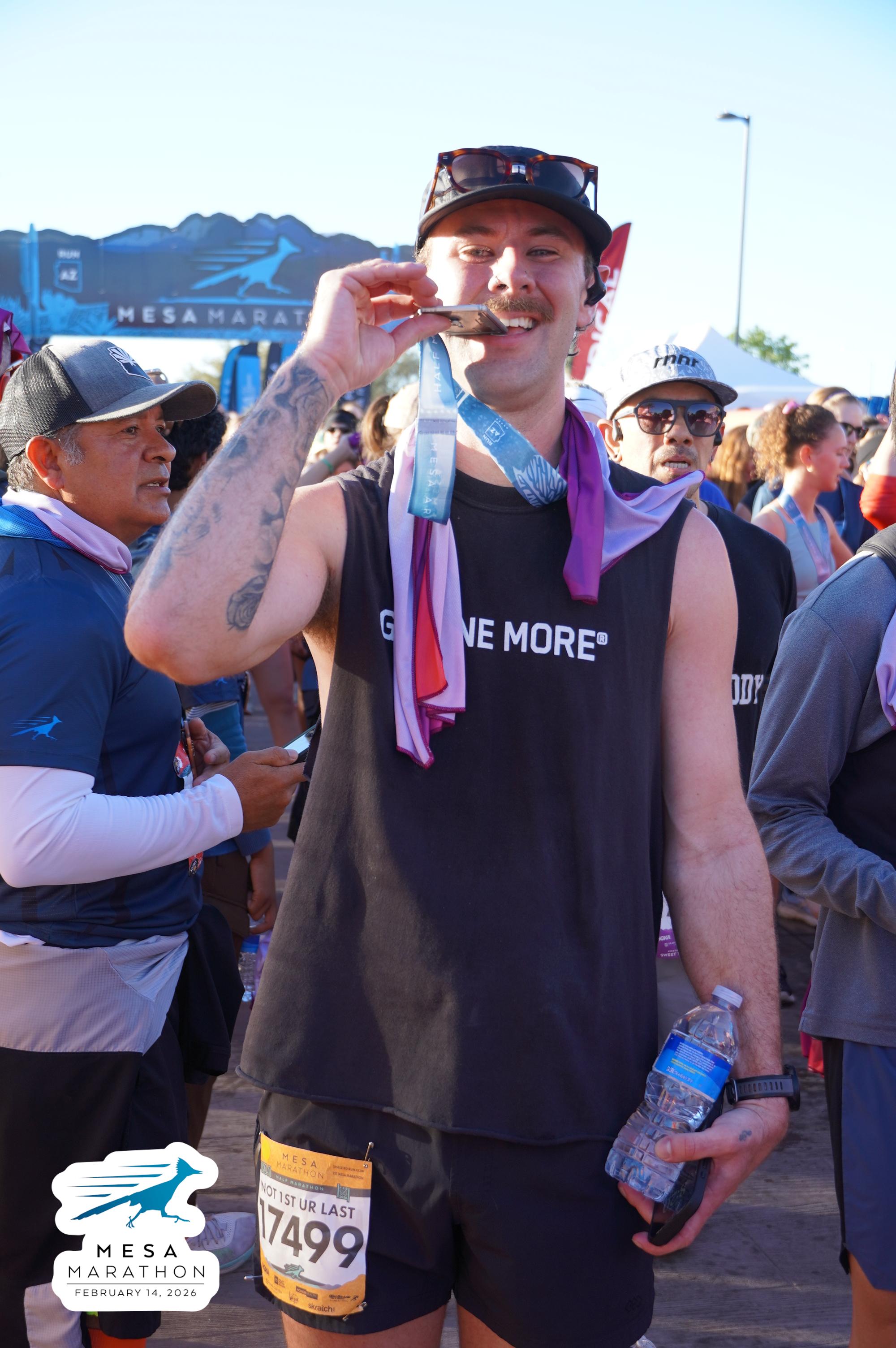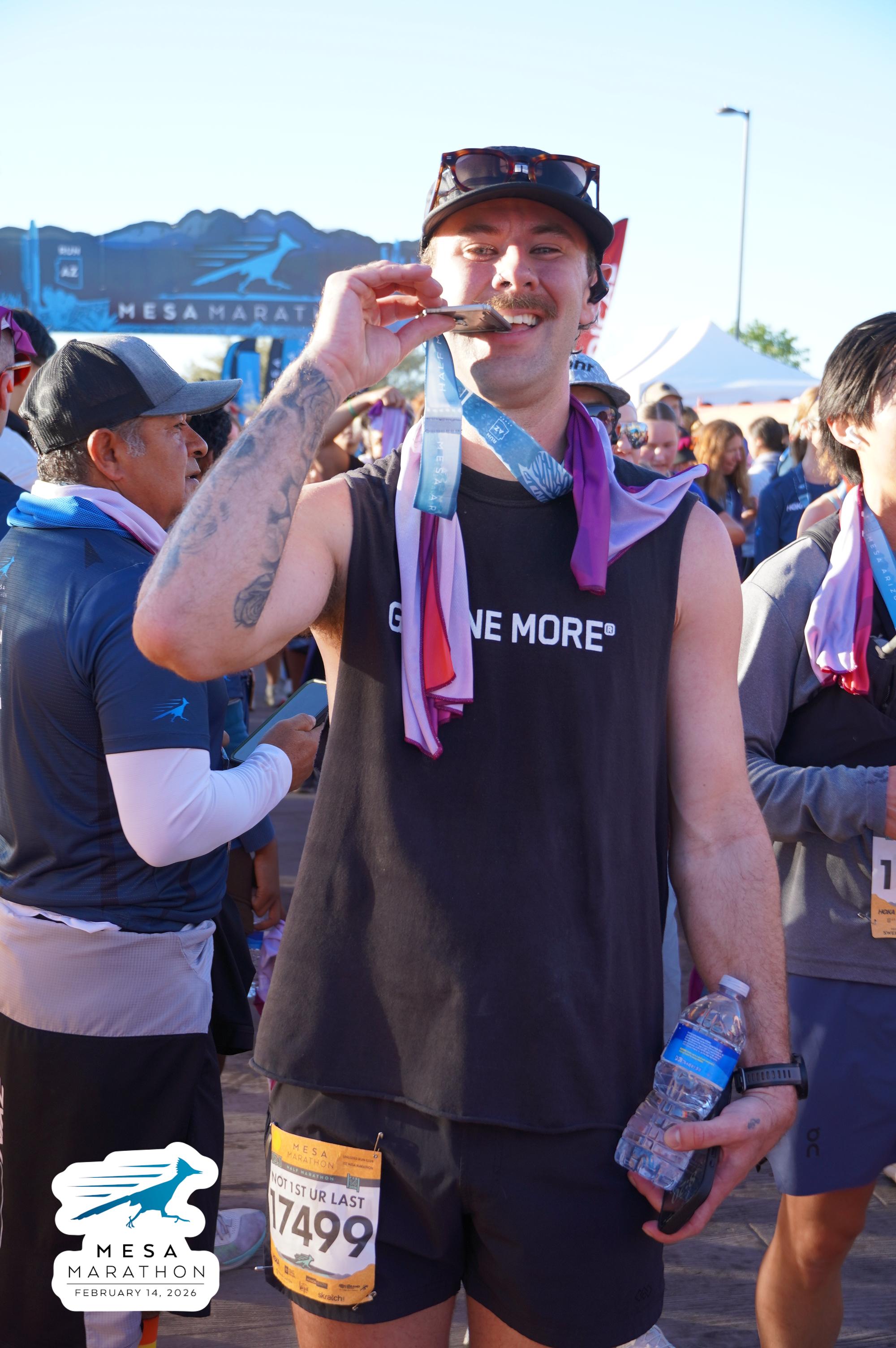 Date: Feb. 14, 2026 Participant: Connor VanSolkema #17499 Race: 2026 Mesa Half Marathon Distance: 13.1 miles