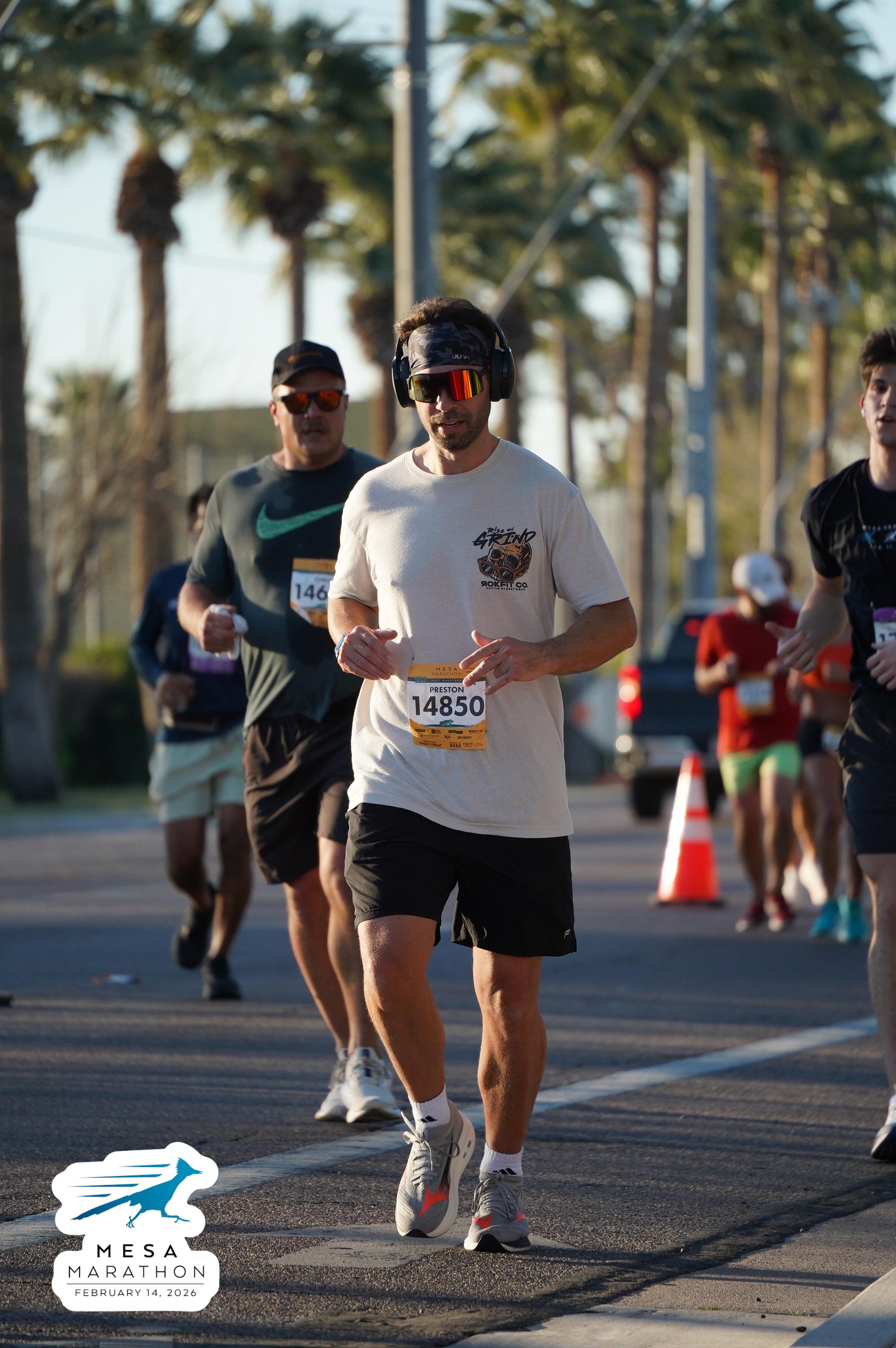 Date: Feb. 14, 2026 Participant: Preston Cannady #14850 Race: 2026 Mesa Half Marathon Distance: 13.1 miles