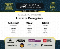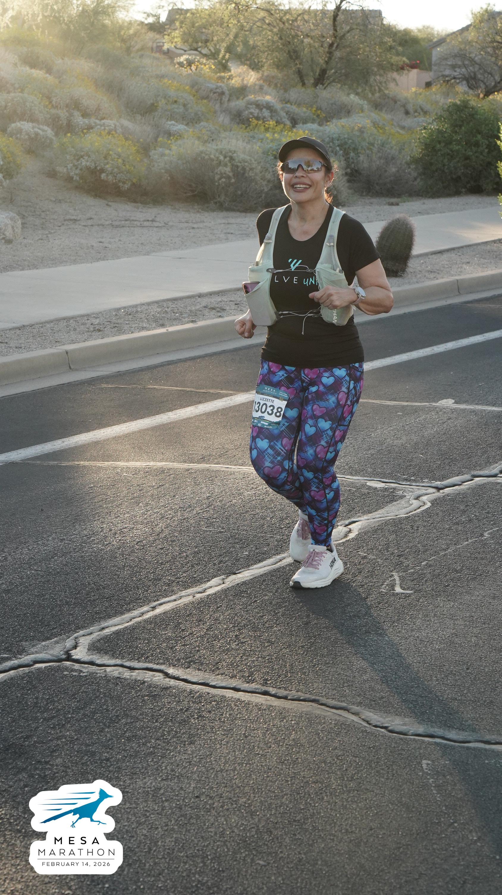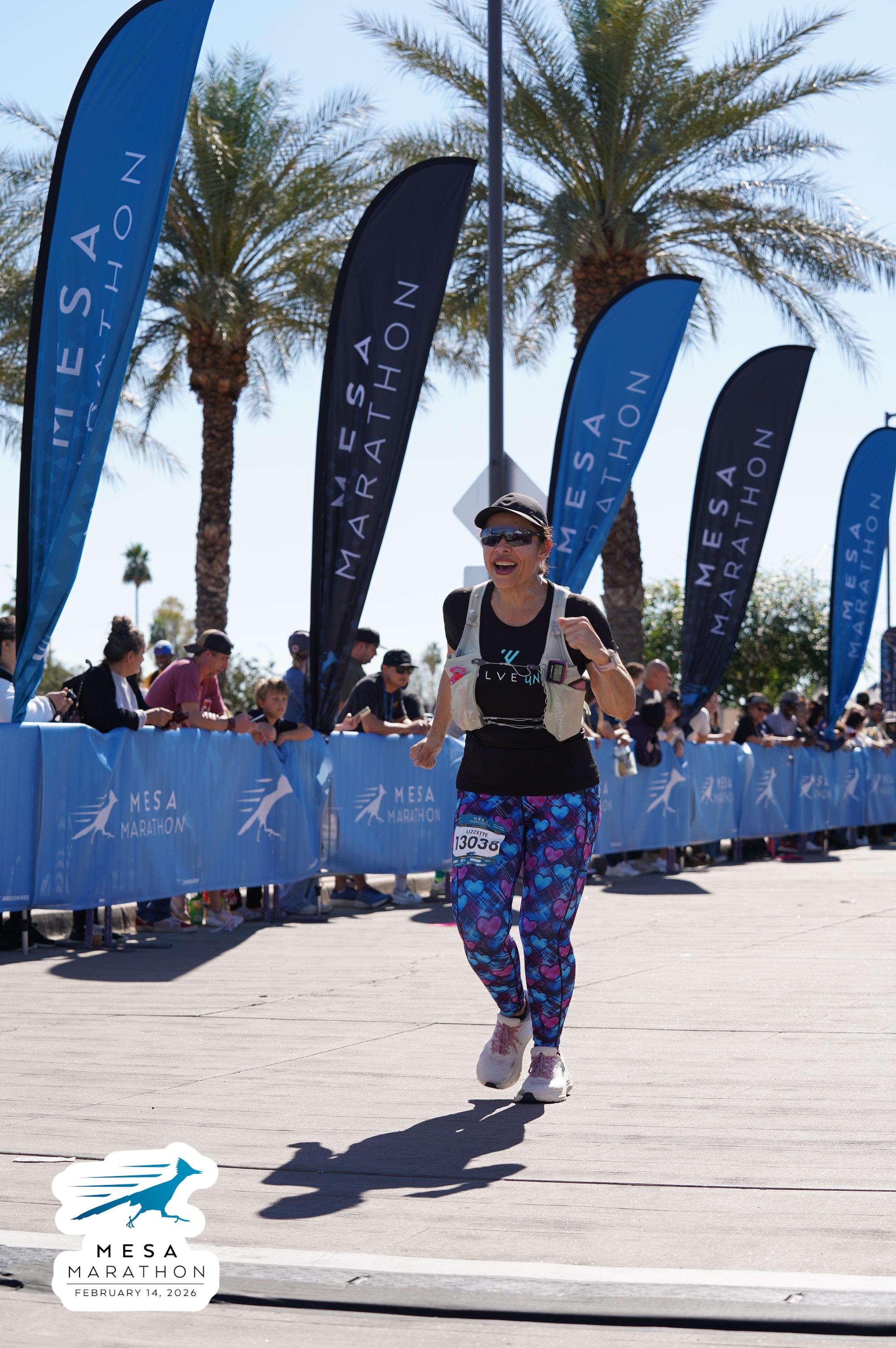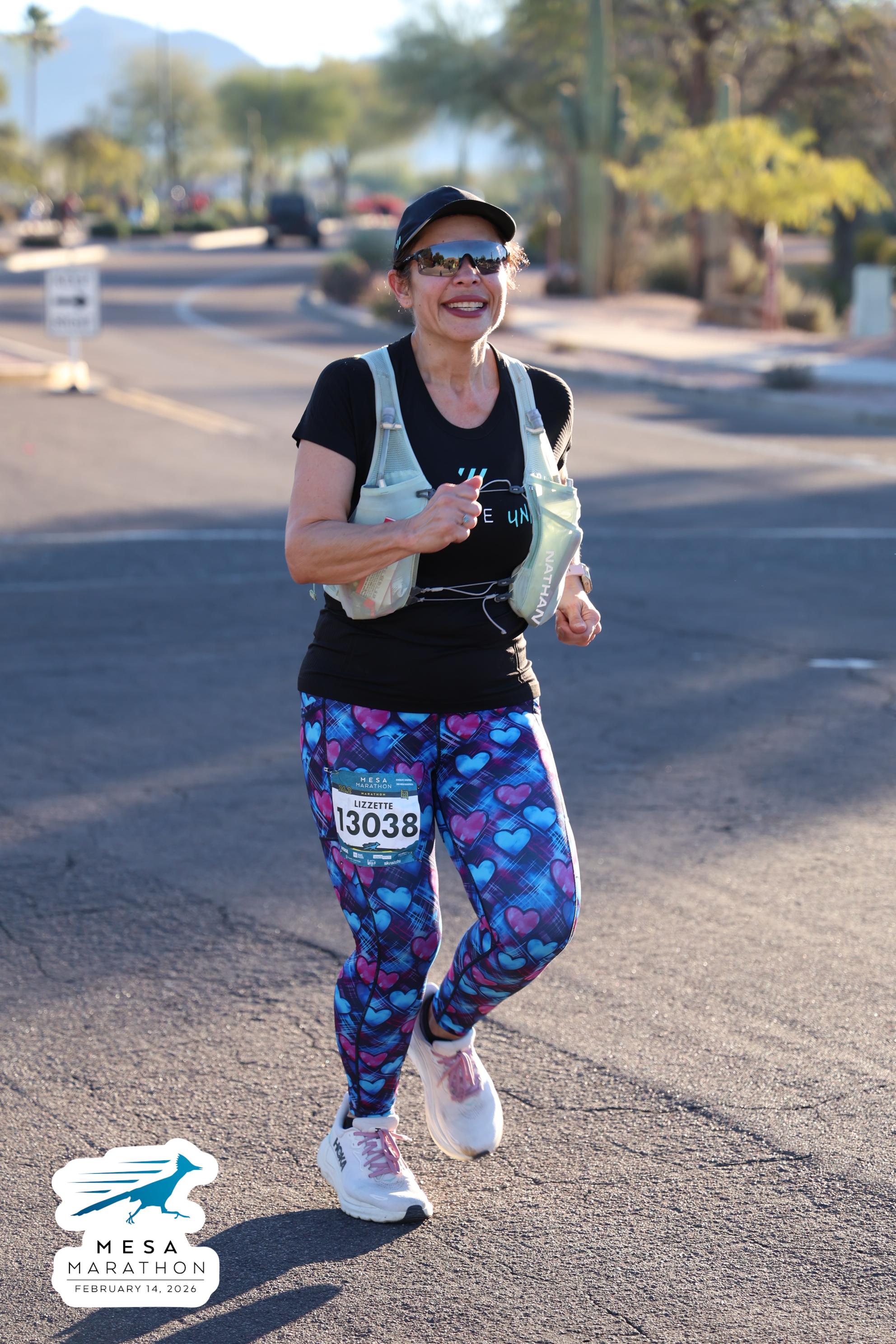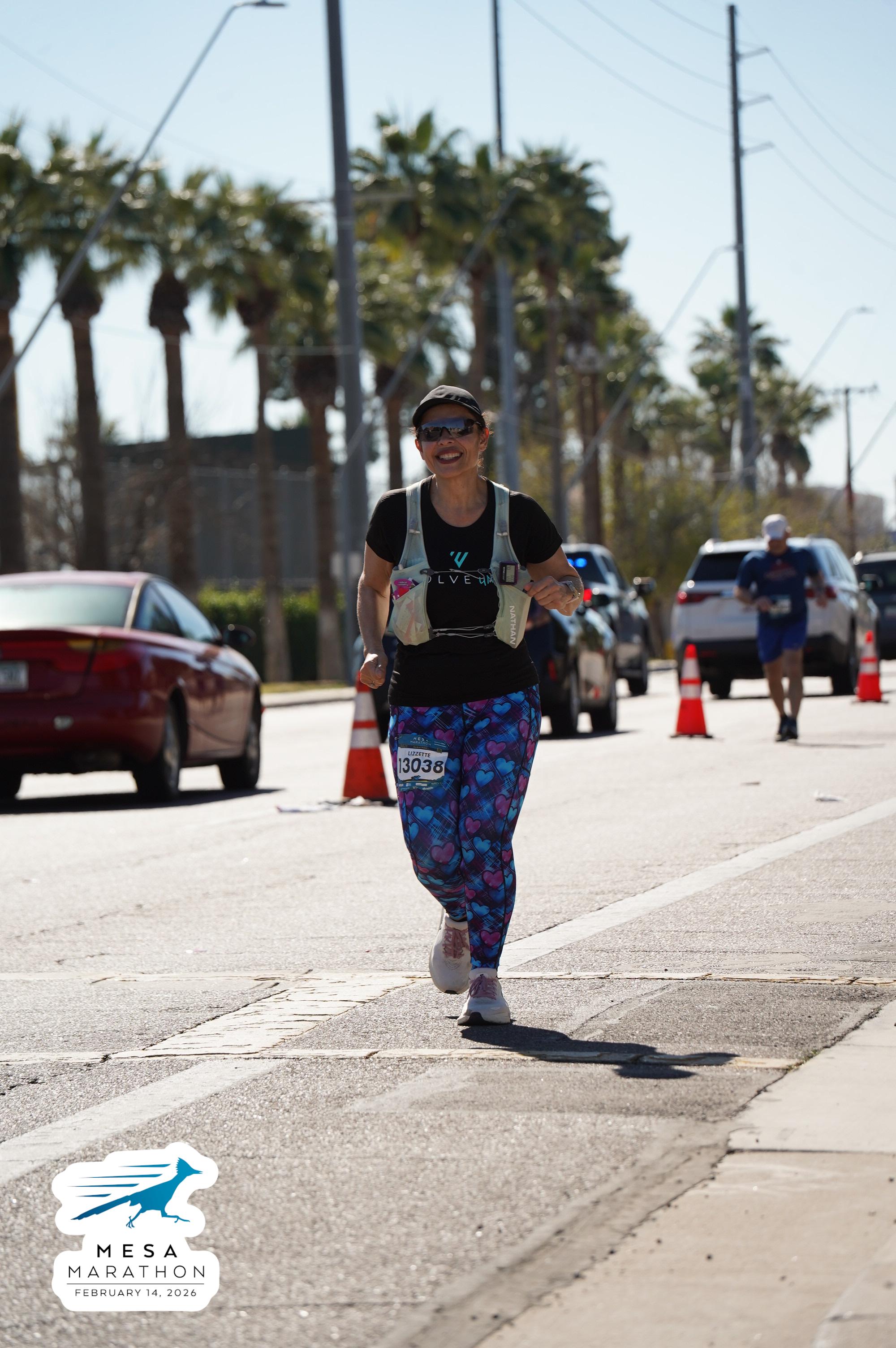 Date: Feb. 14, 2026 Participant: Lizzette Peregrina #13038 Race: 2026 Mesa Marathon Distance: 26.2 miles