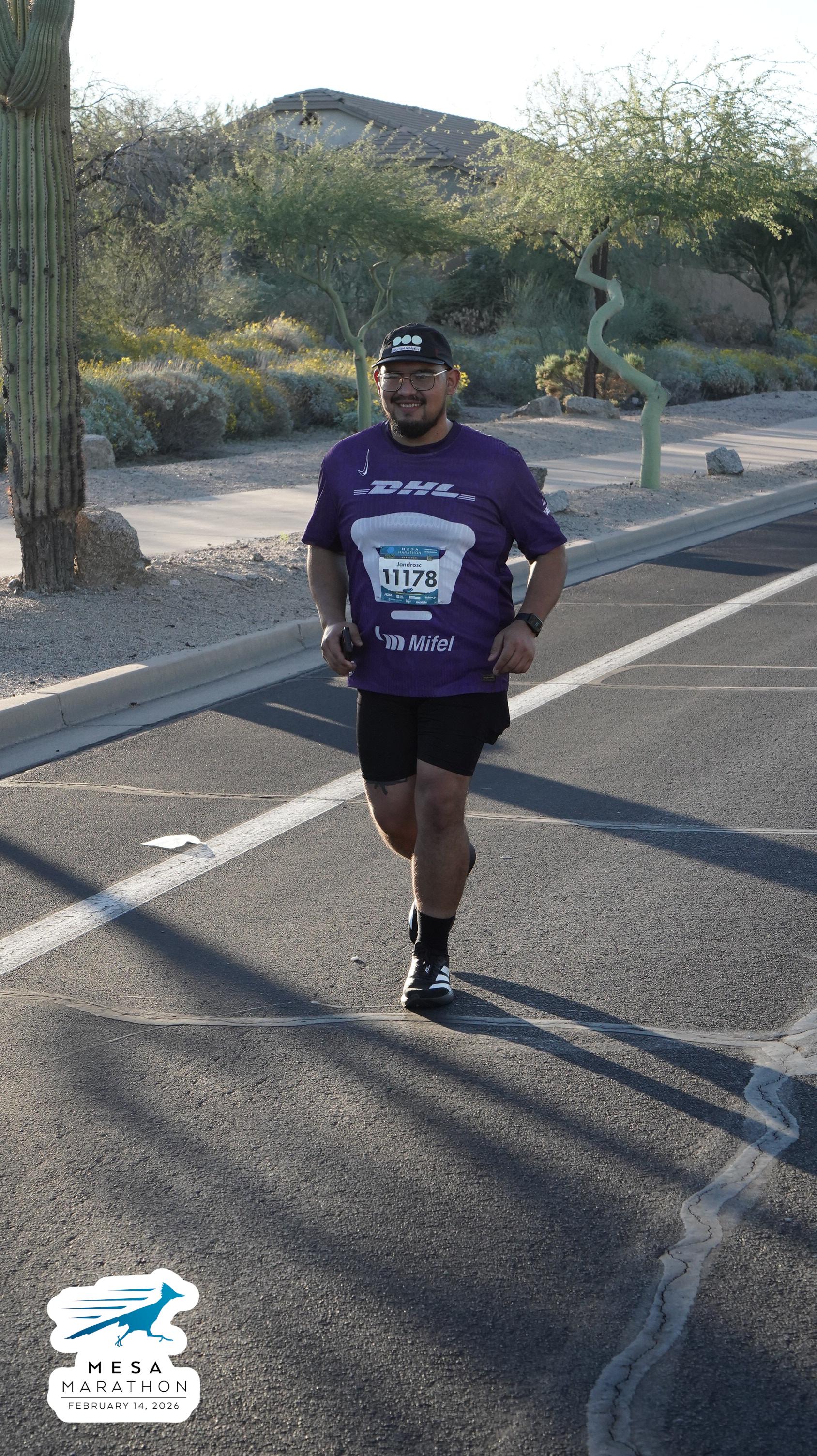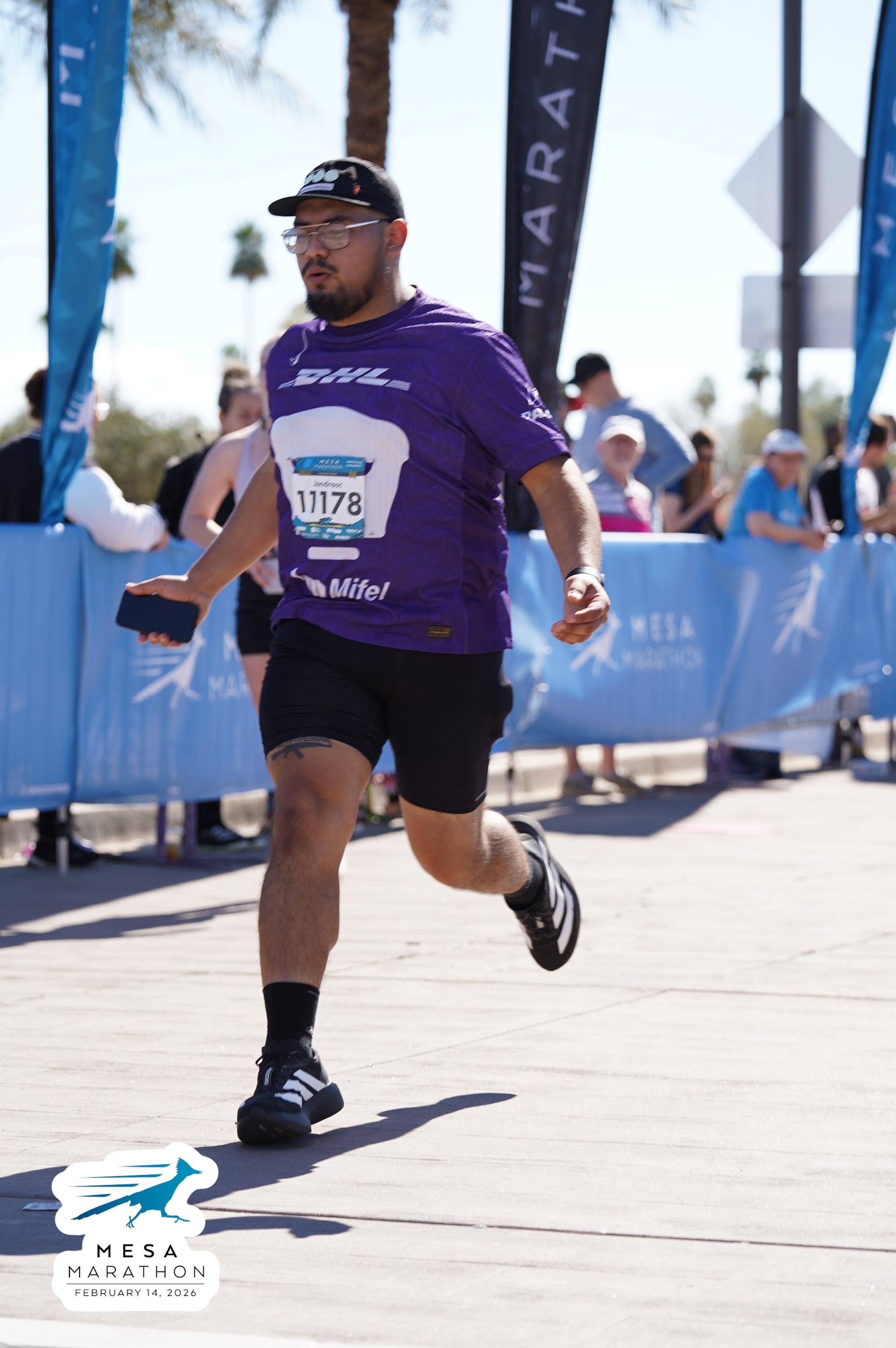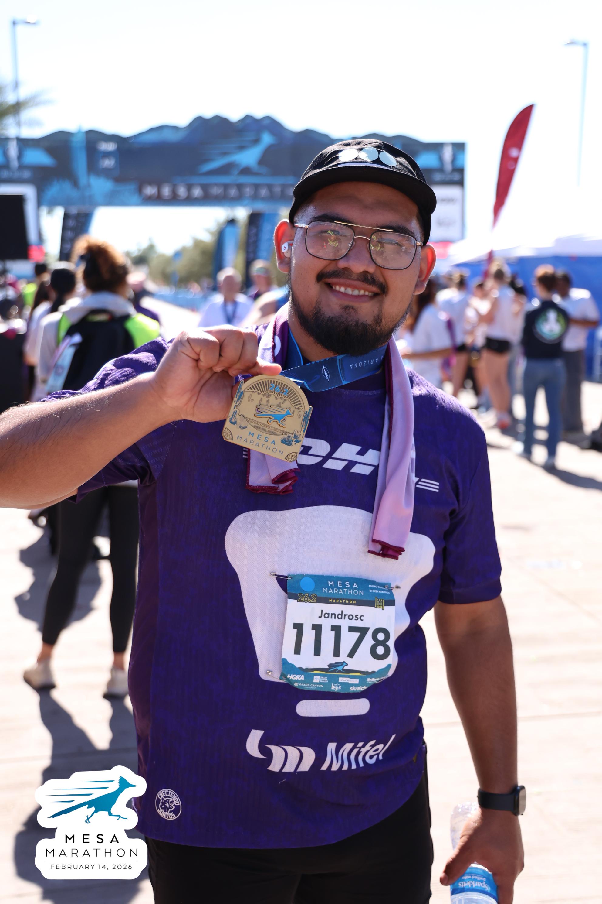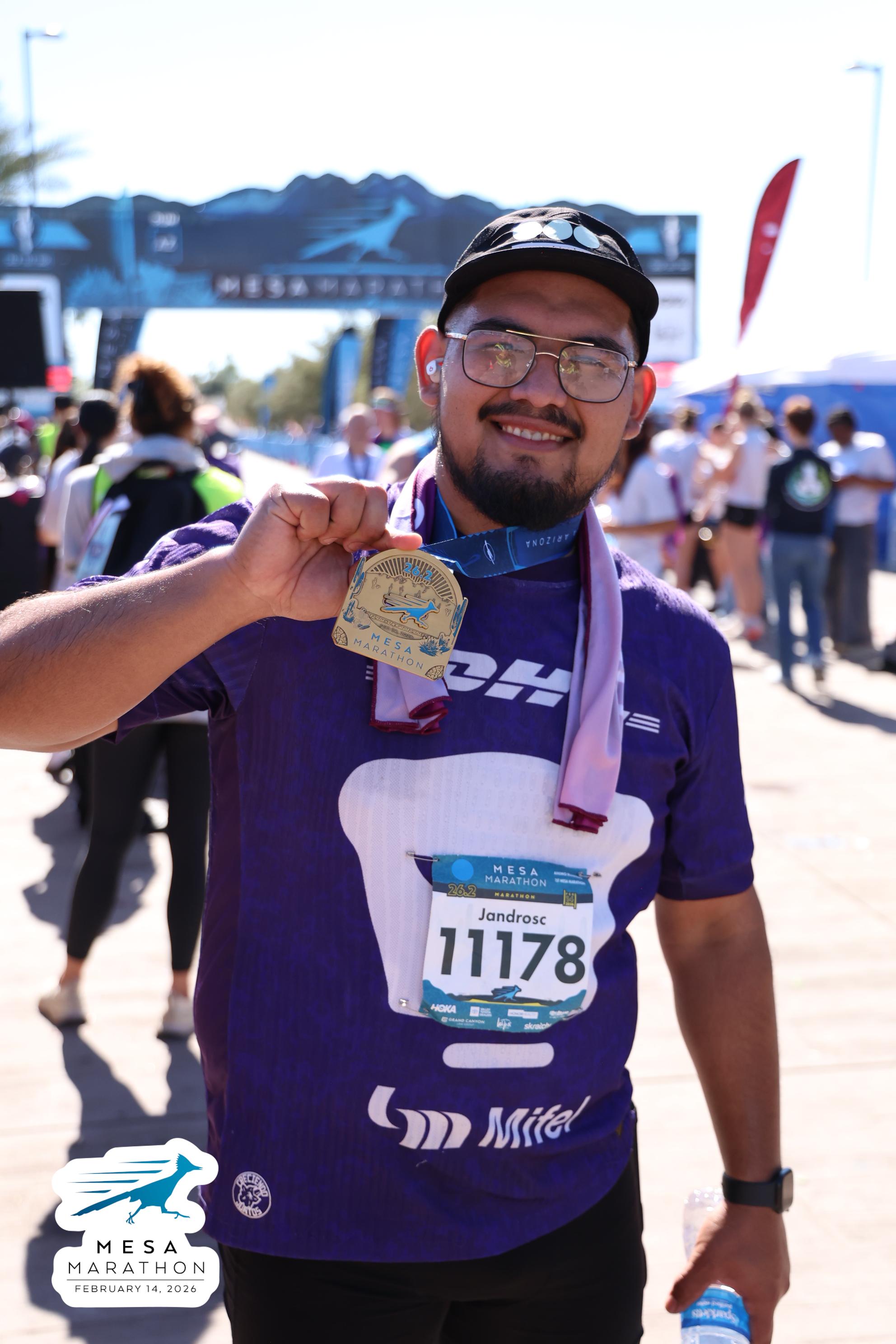 Date: Feb. 14, 2026 Participant: Alejandro Castaneda #11178 Race: 2026 Mesa Marathon Distance: 26.2 miles