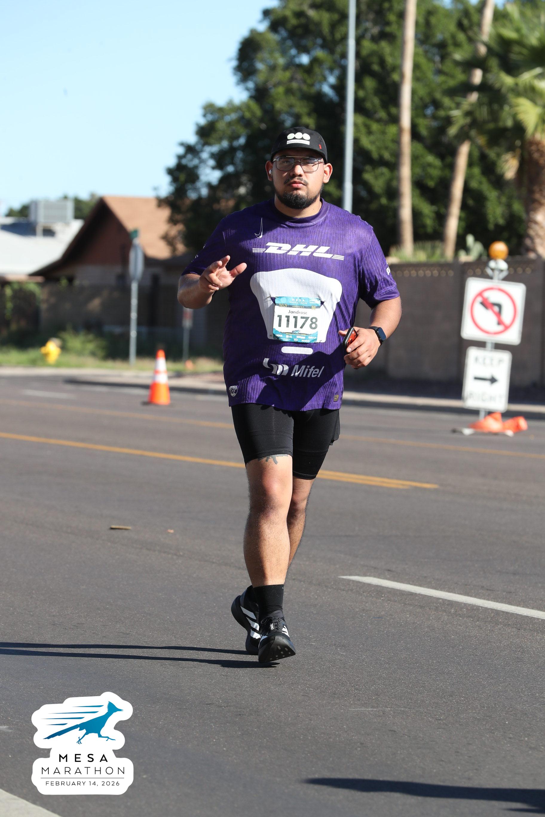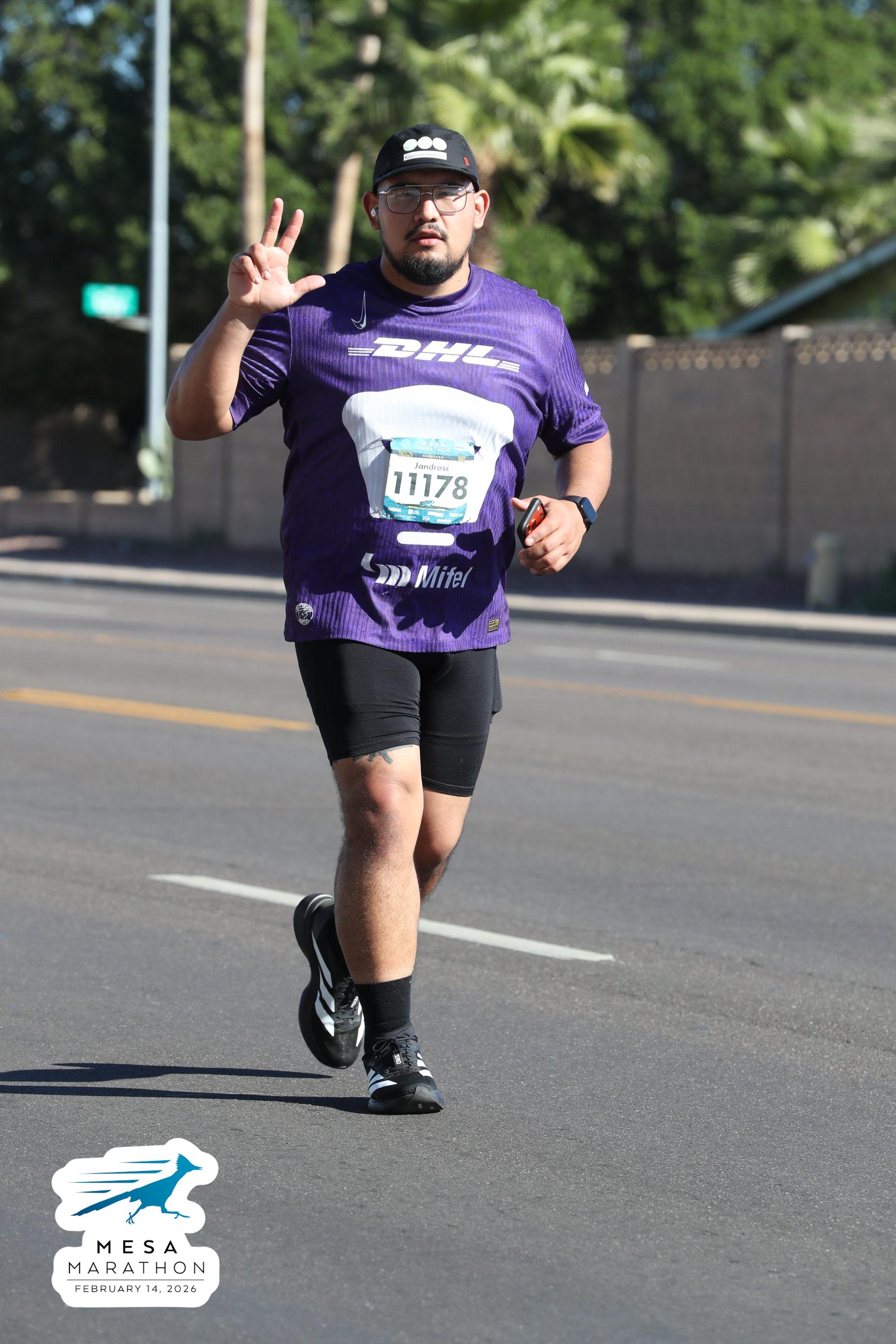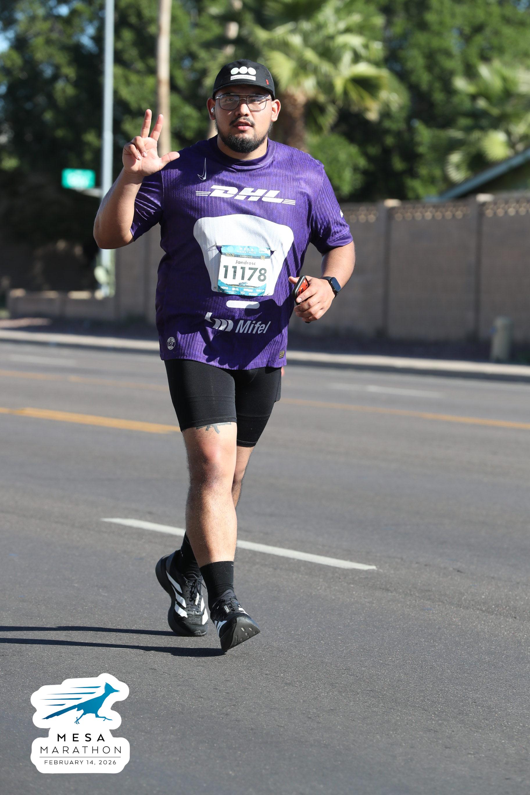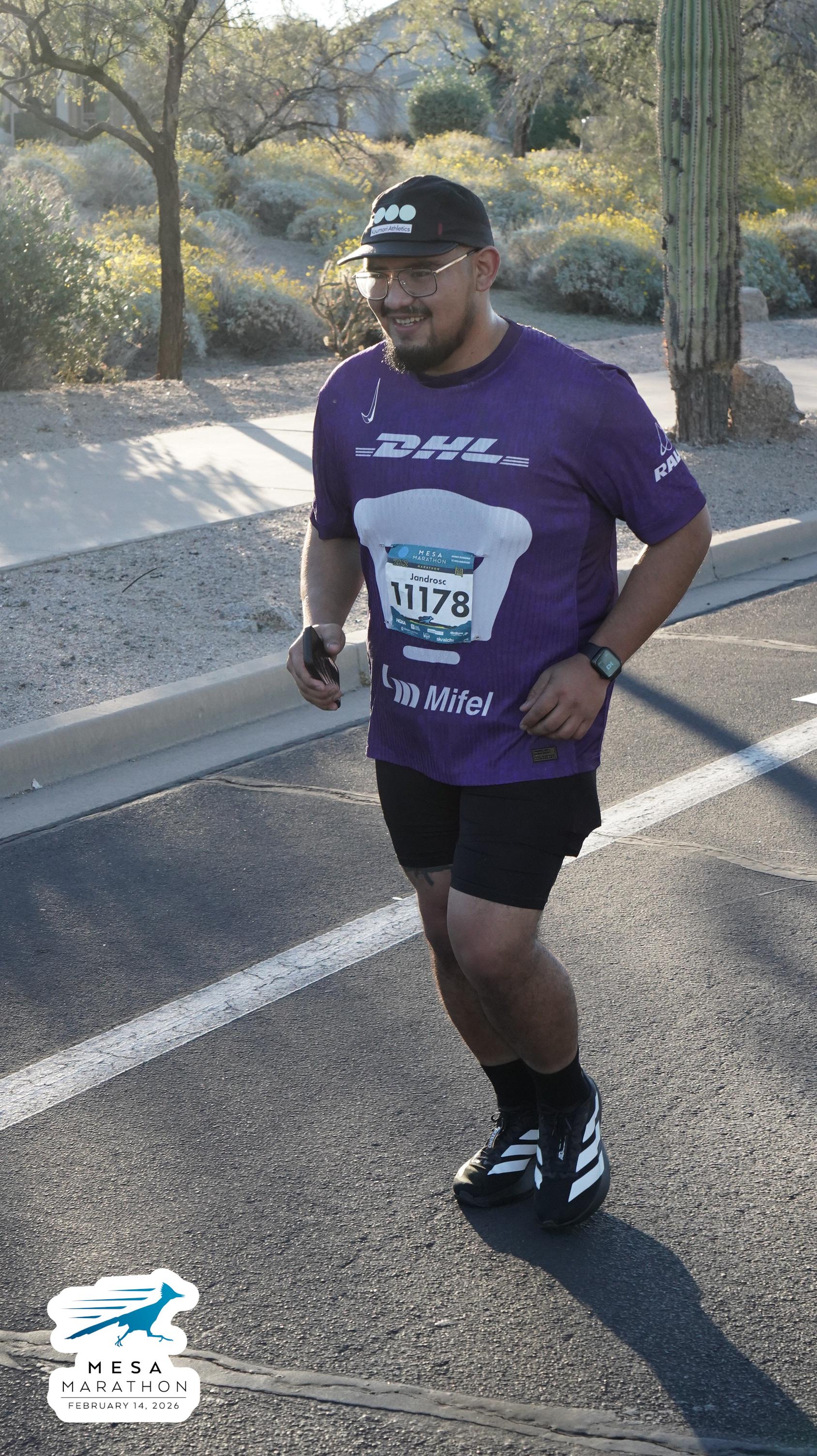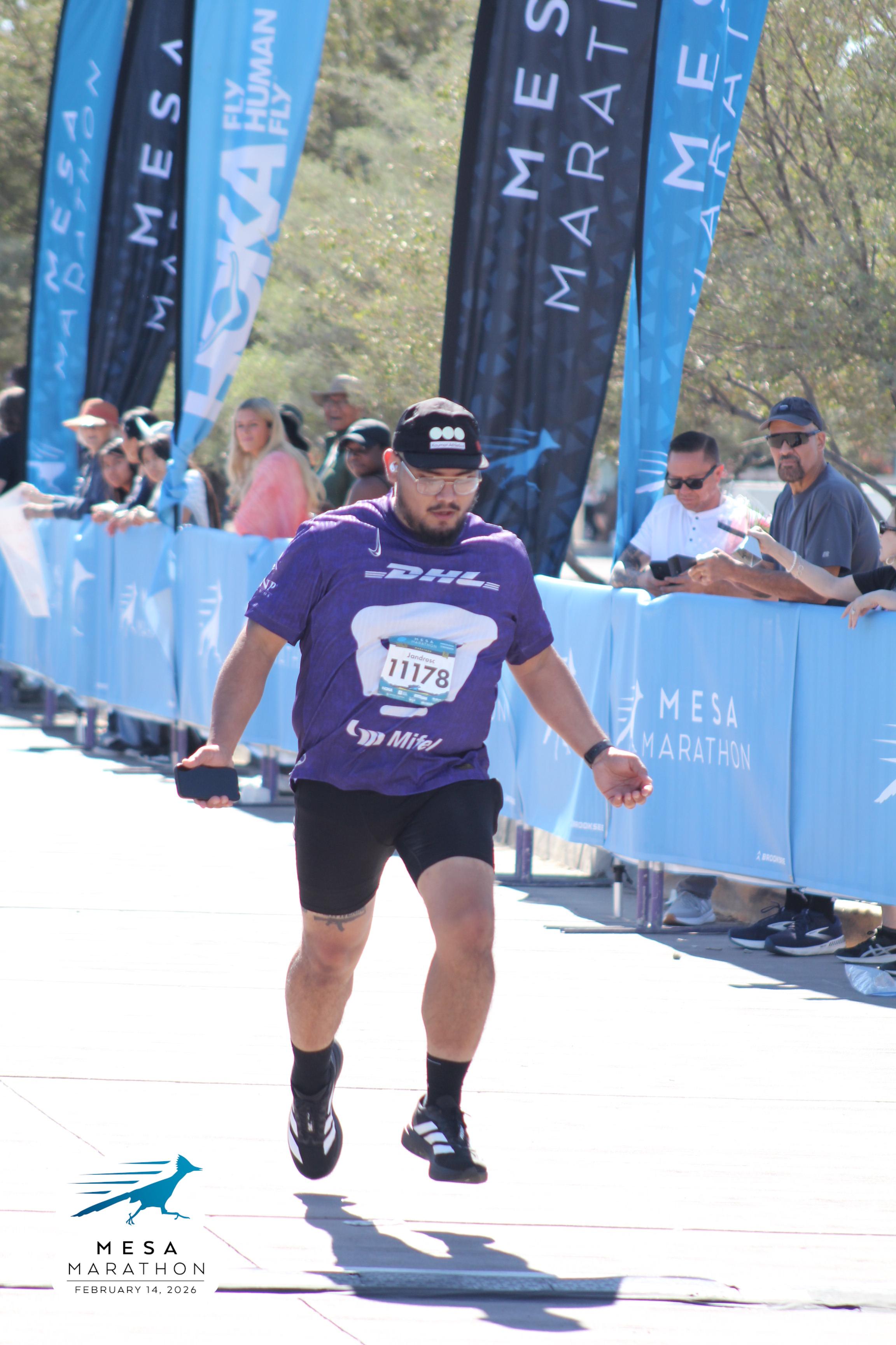 Date: Feb. 14, 2026 Participant: Alejandro Castaneda #11178 Race: 2026 Mesa Marathon Distance: 26.2 miles