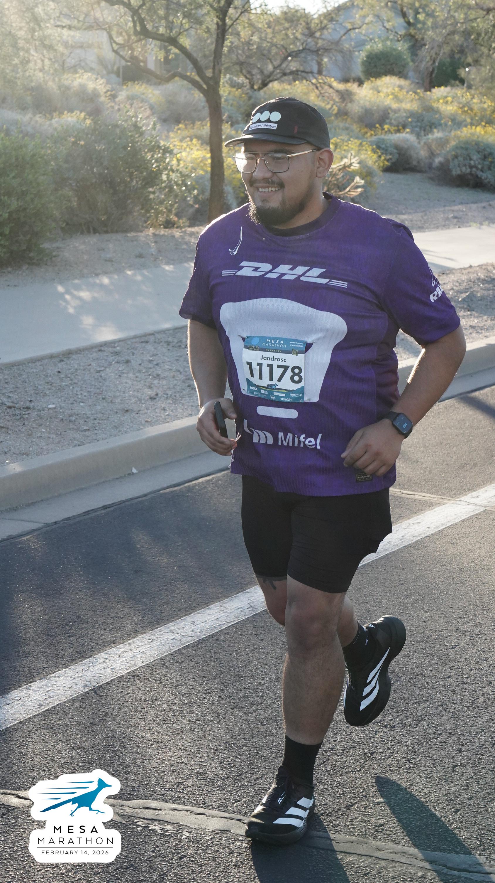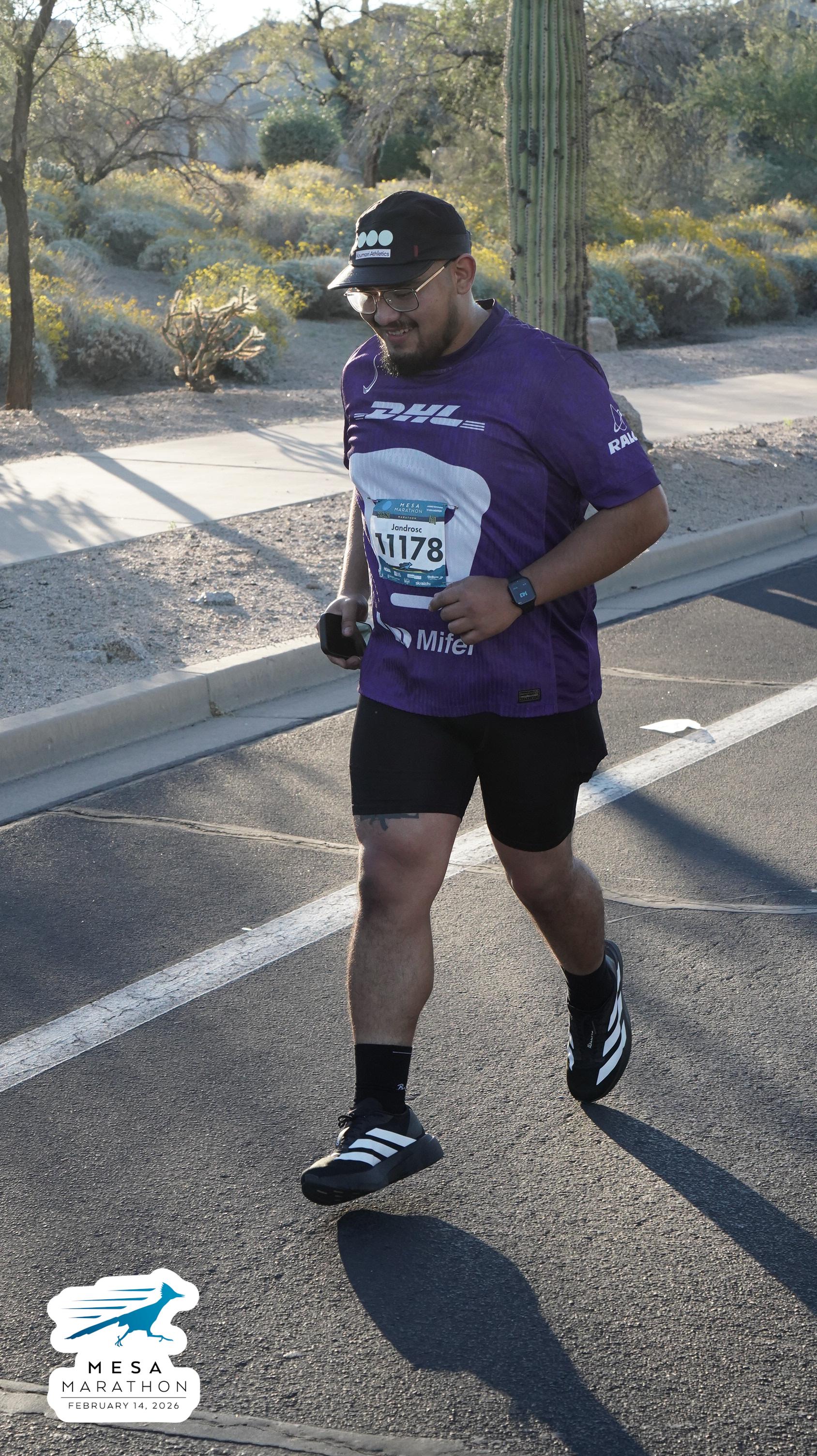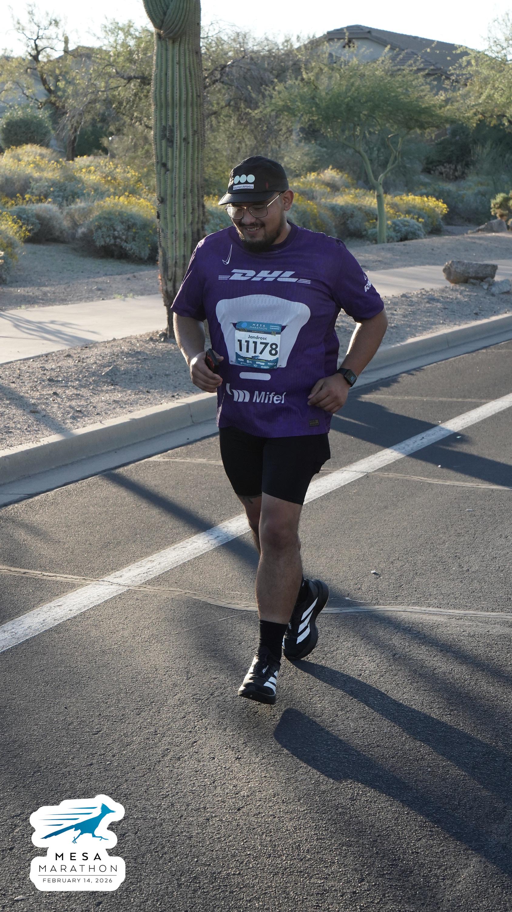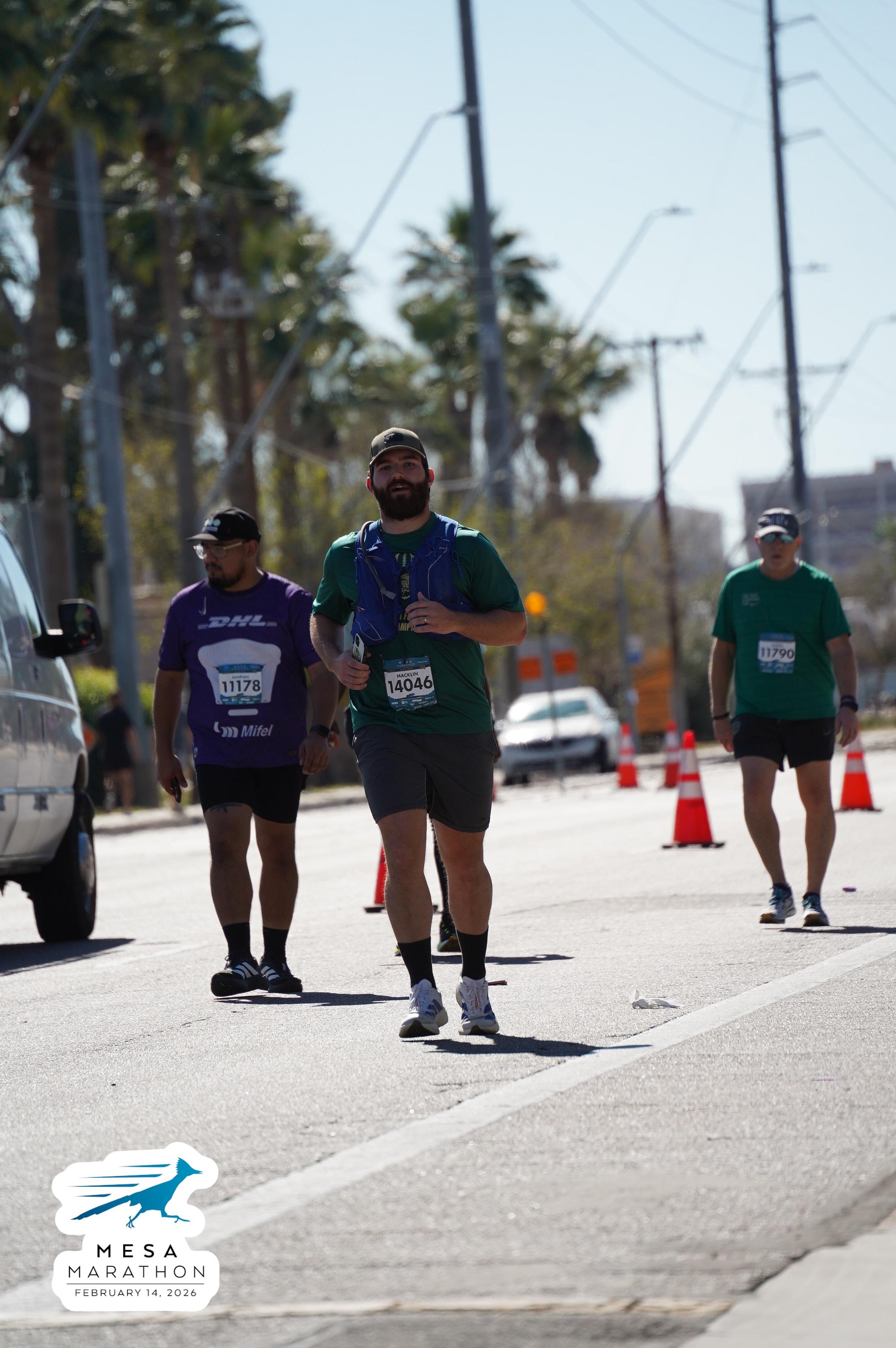 Date: Feb. 14, 2026 Participant: Alejandro Castaneda #11178 Race: 2026 Mesa Marathon Distance: 26.2 miles