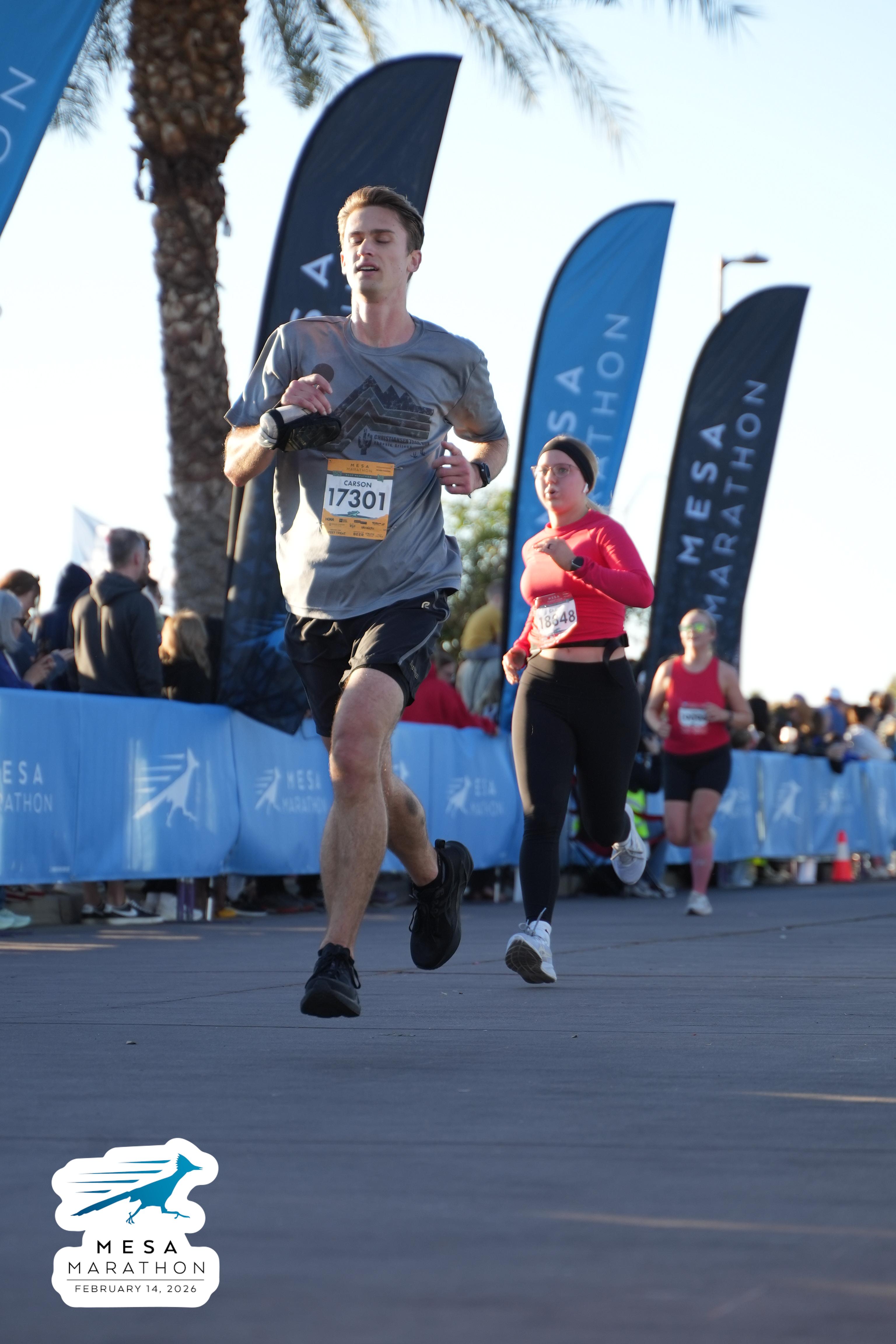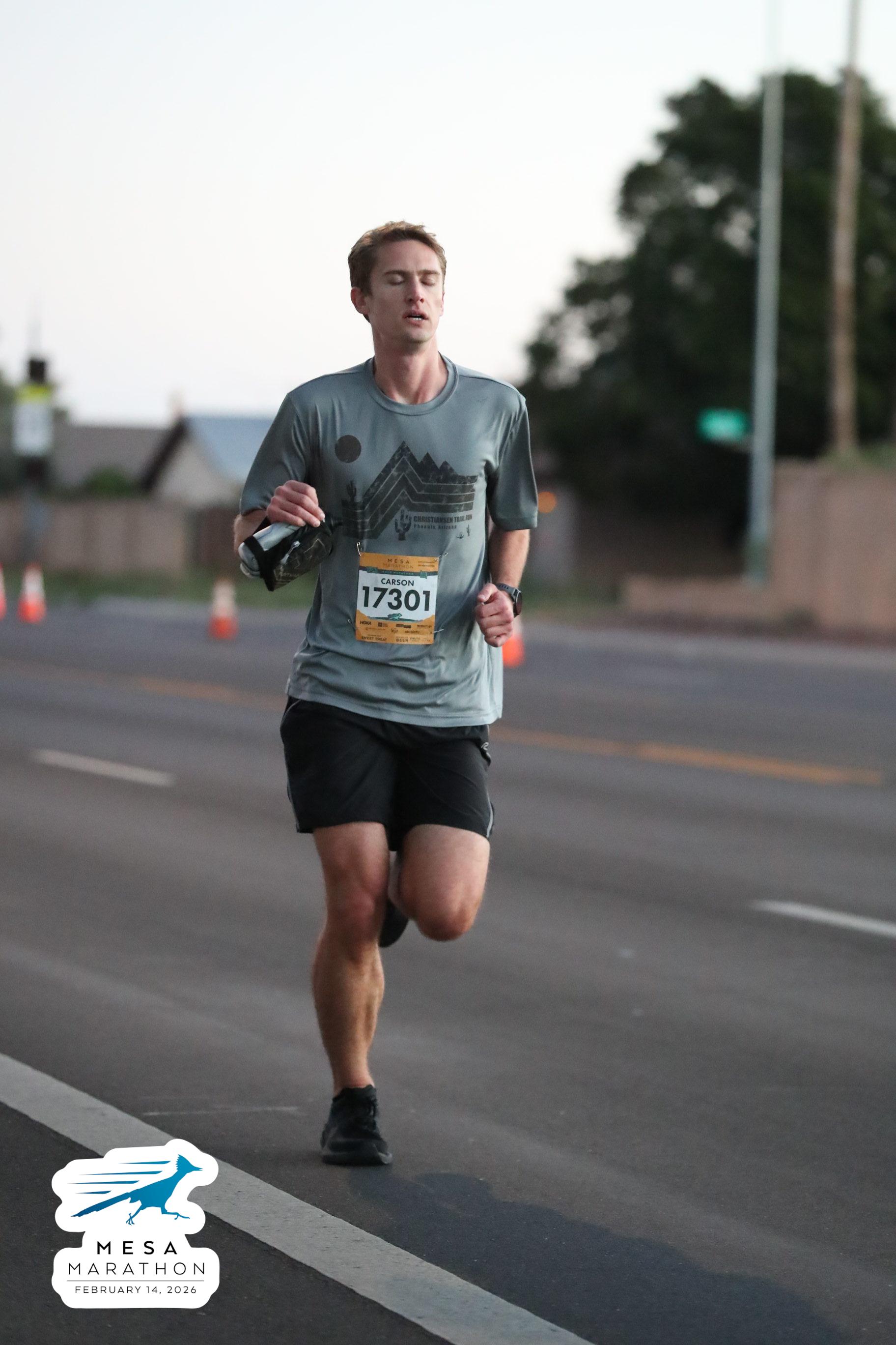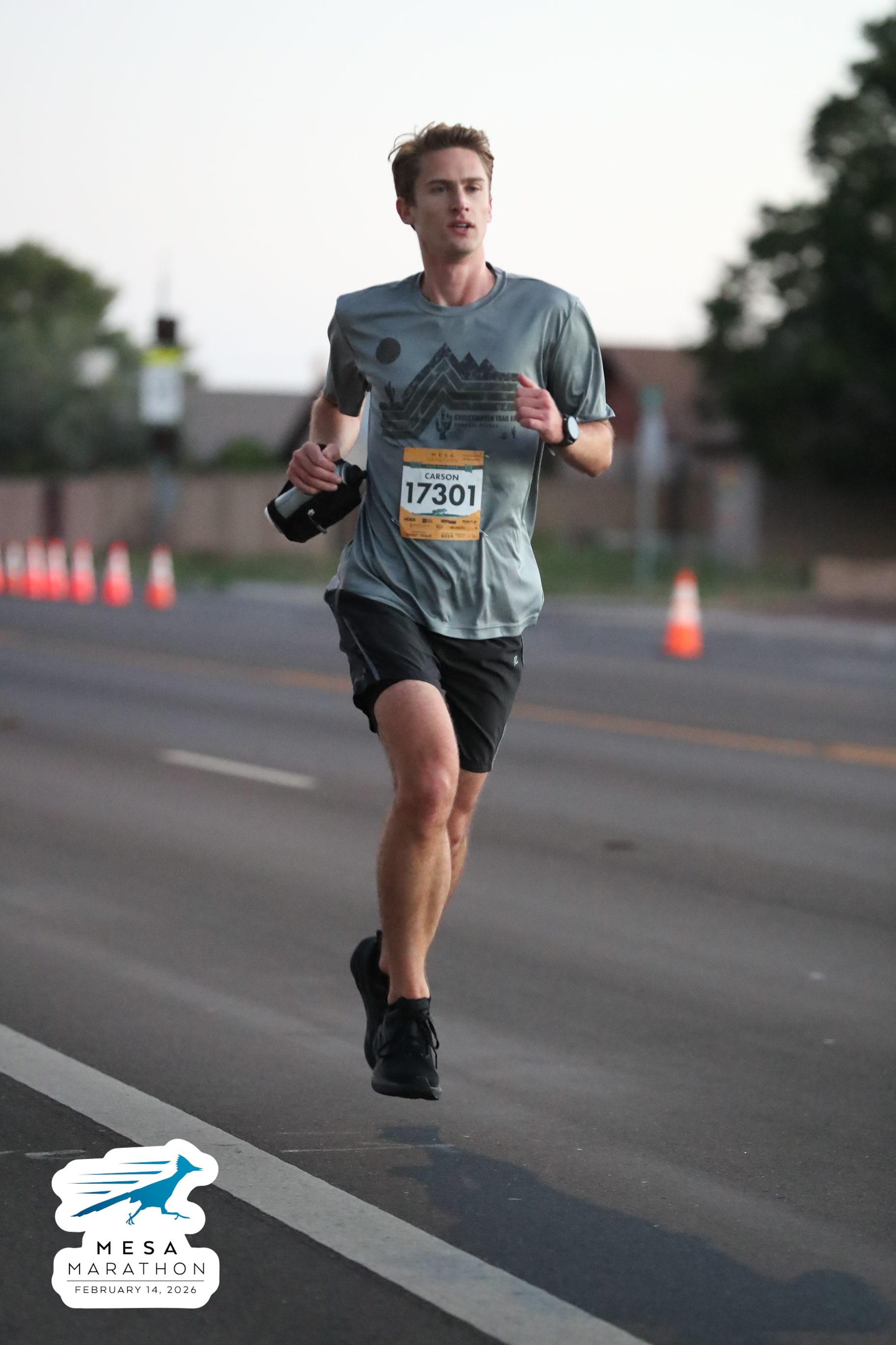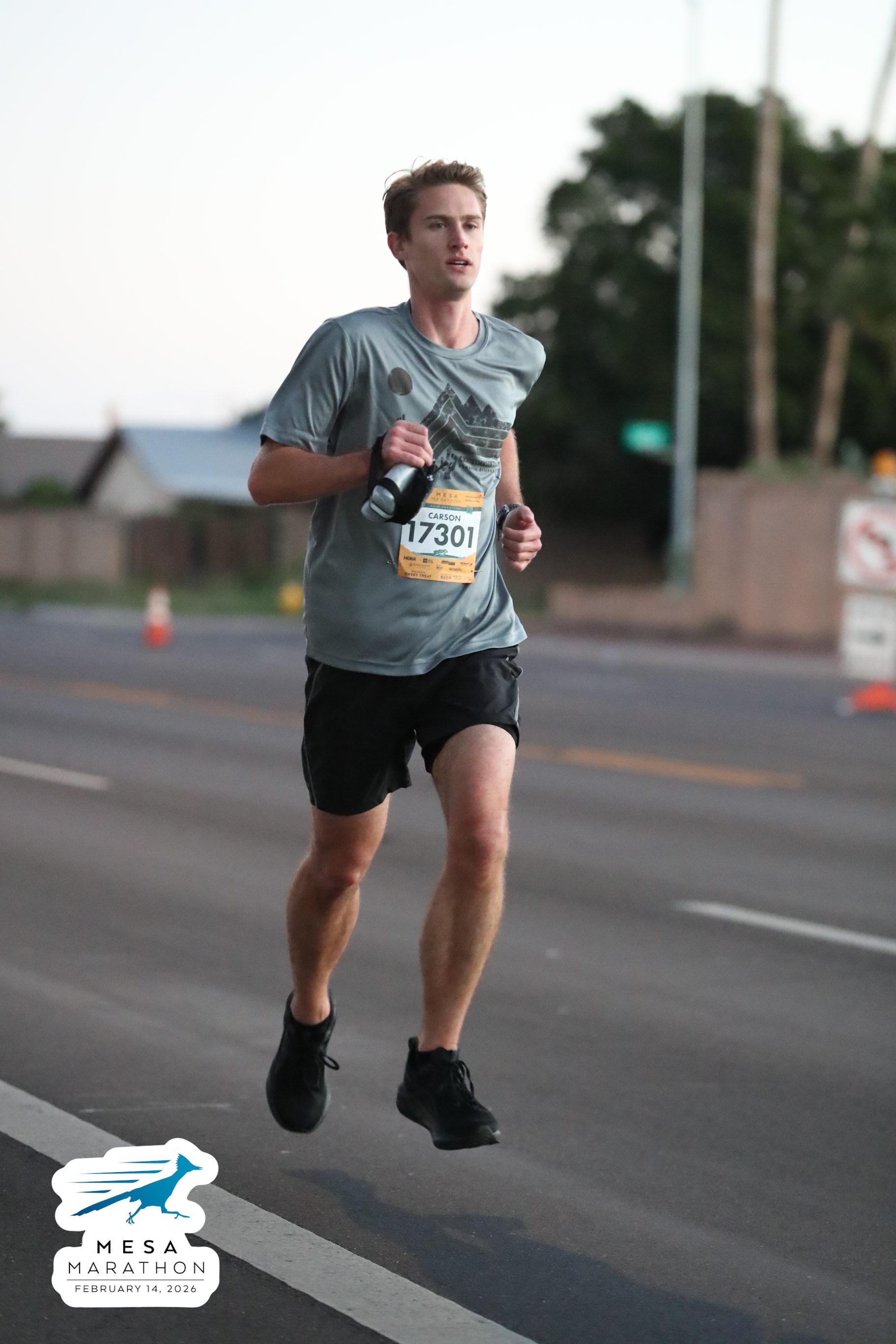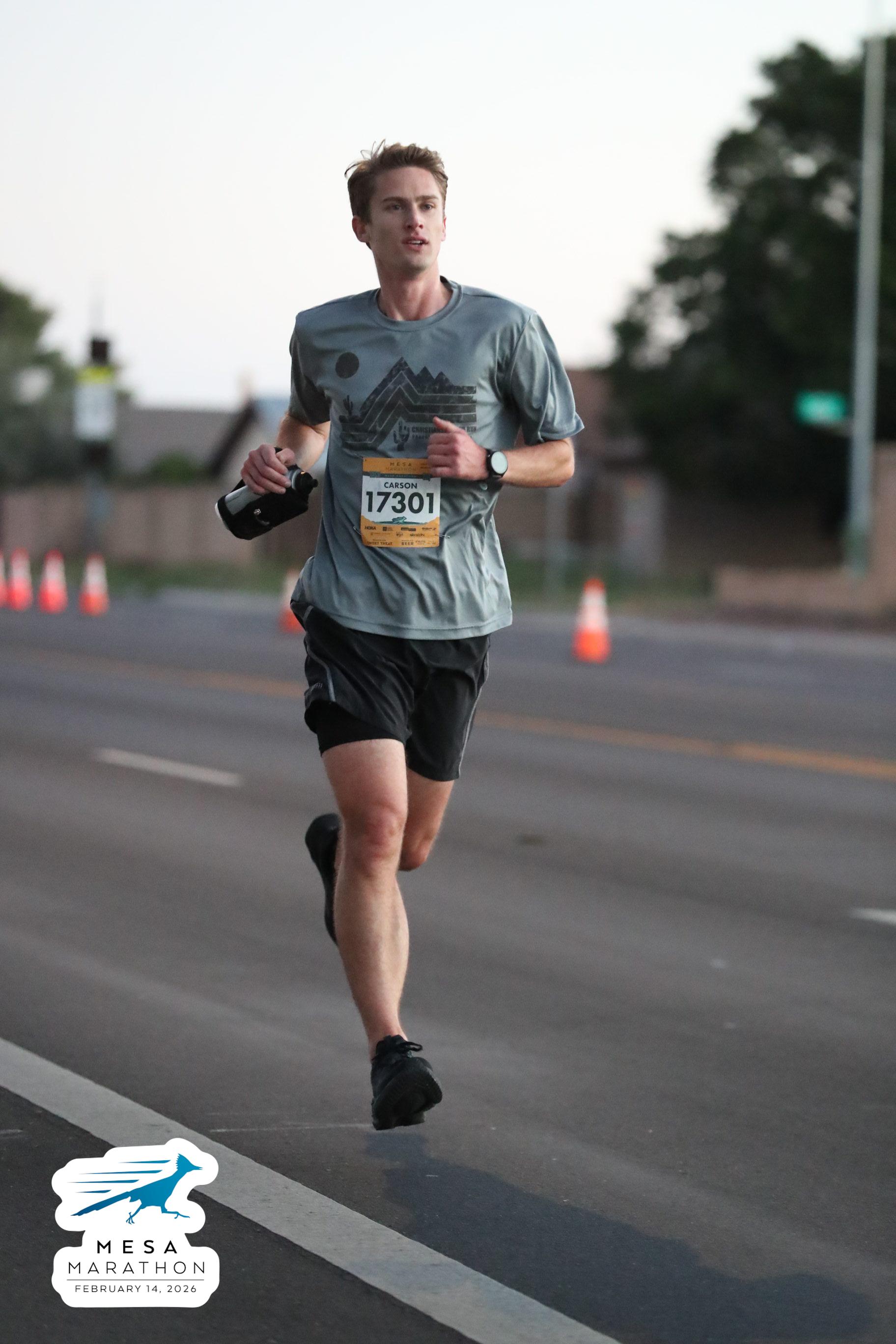 Date: Feb. 14, 2026 Participant: Carson Storey #17301 Race: 2026 Mesa Half Marathon Distance: 13.1 miles