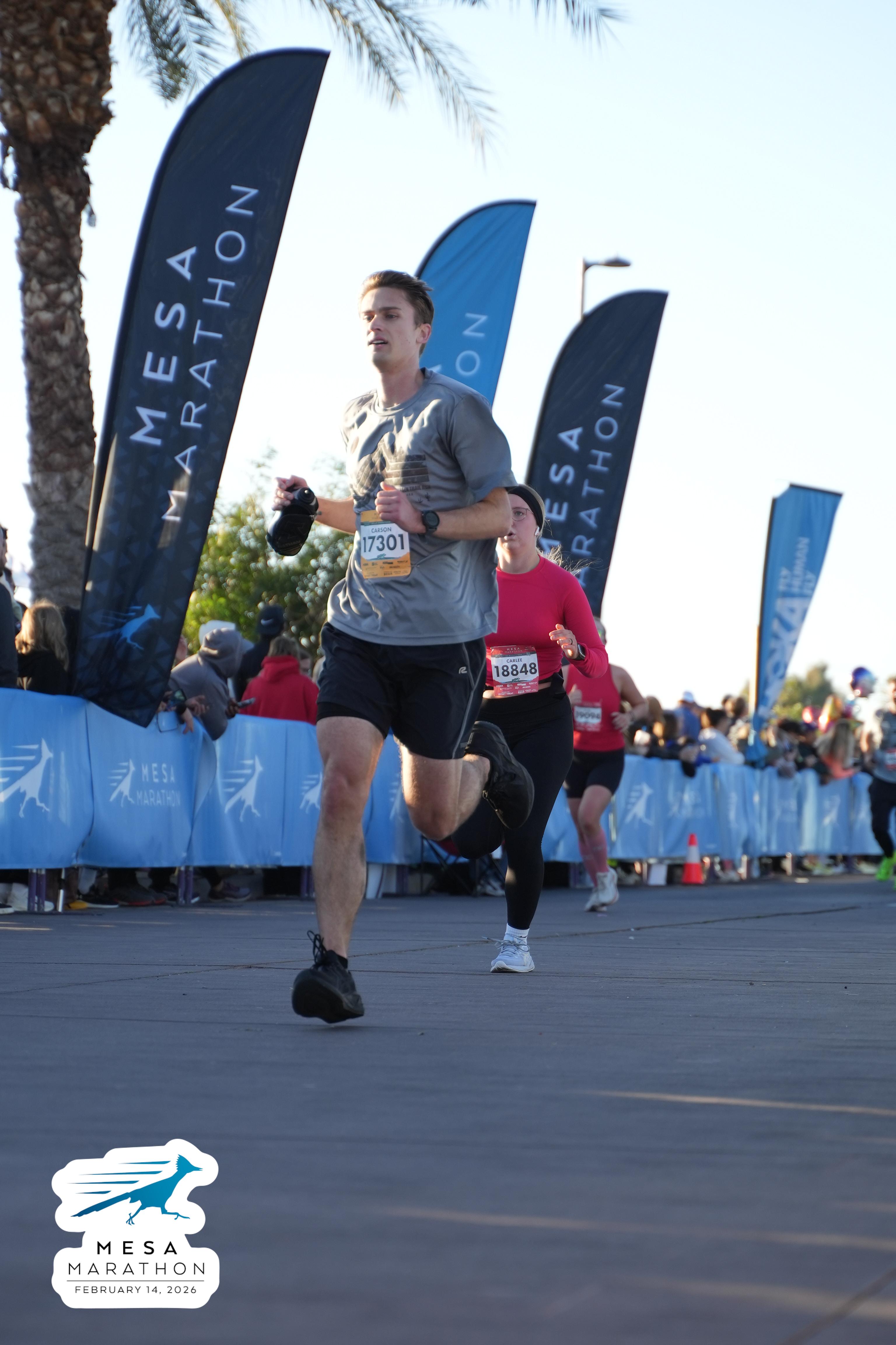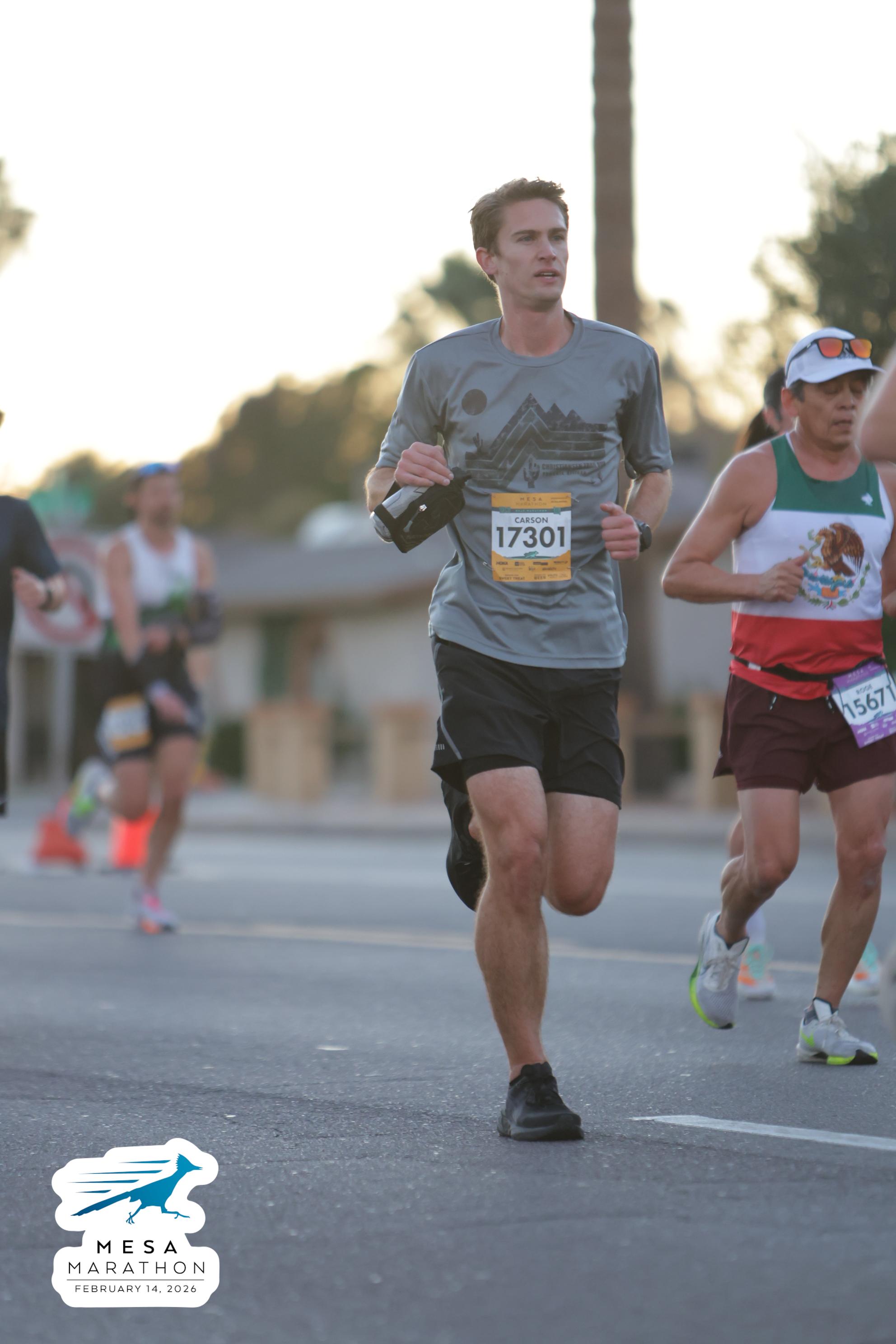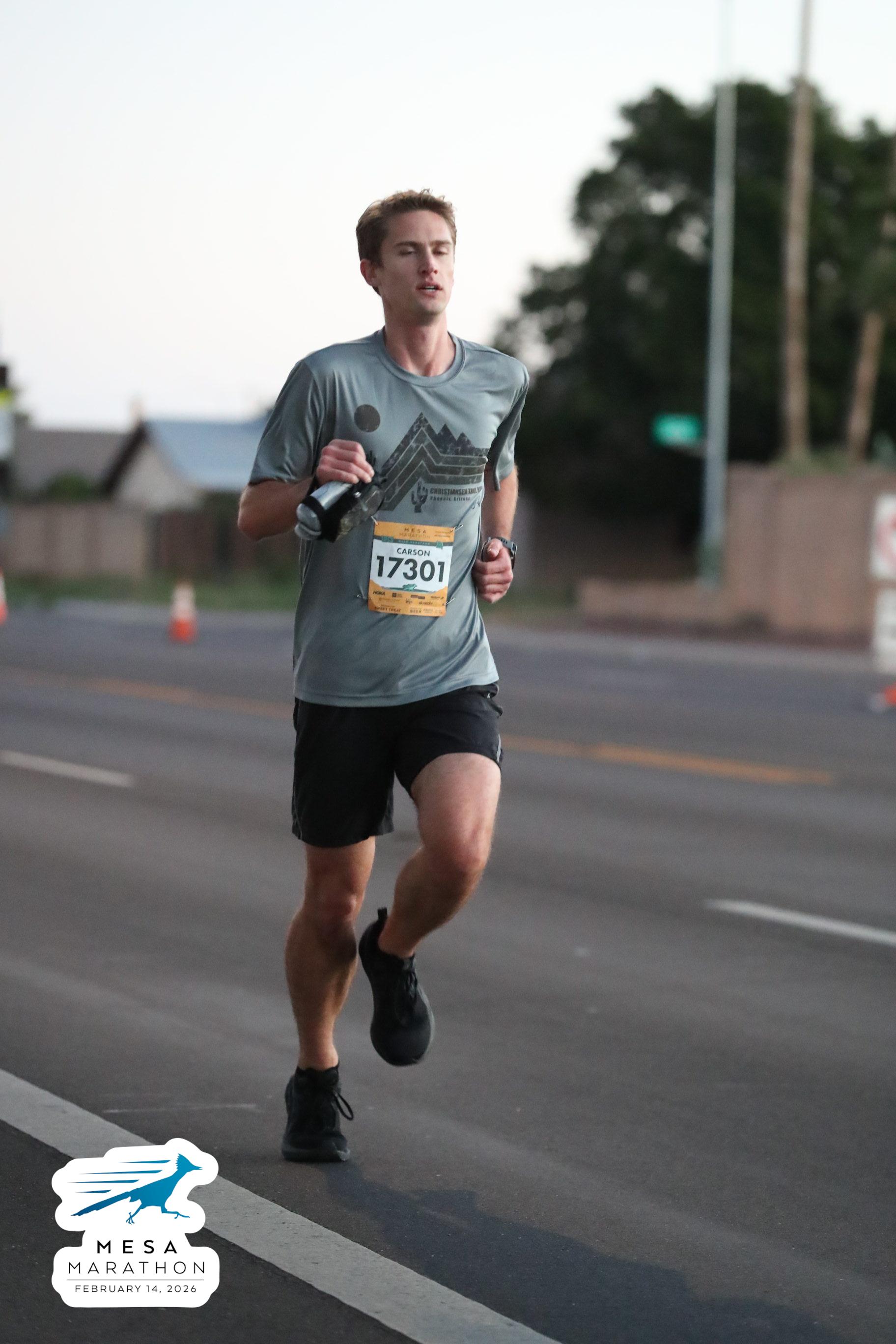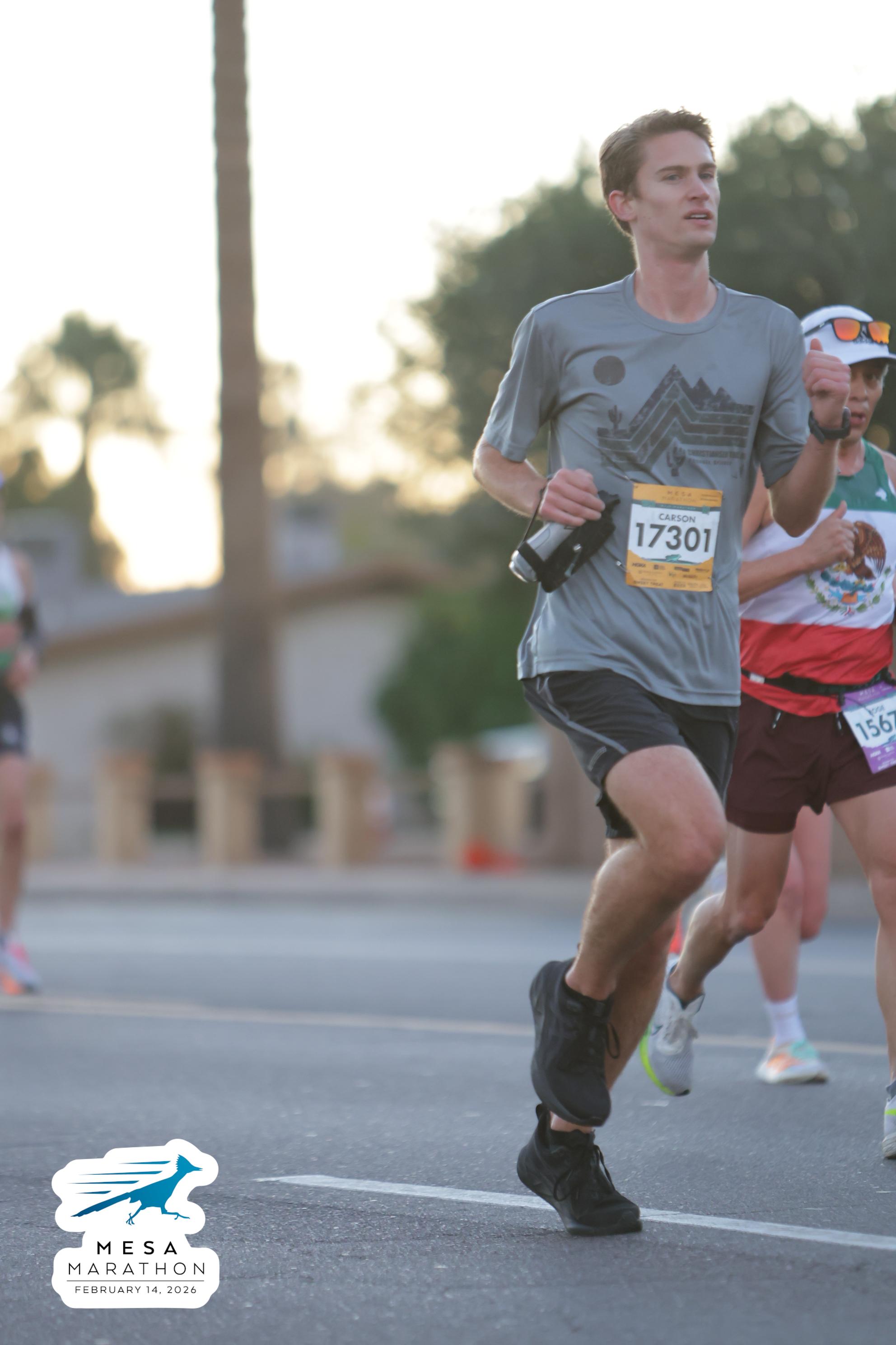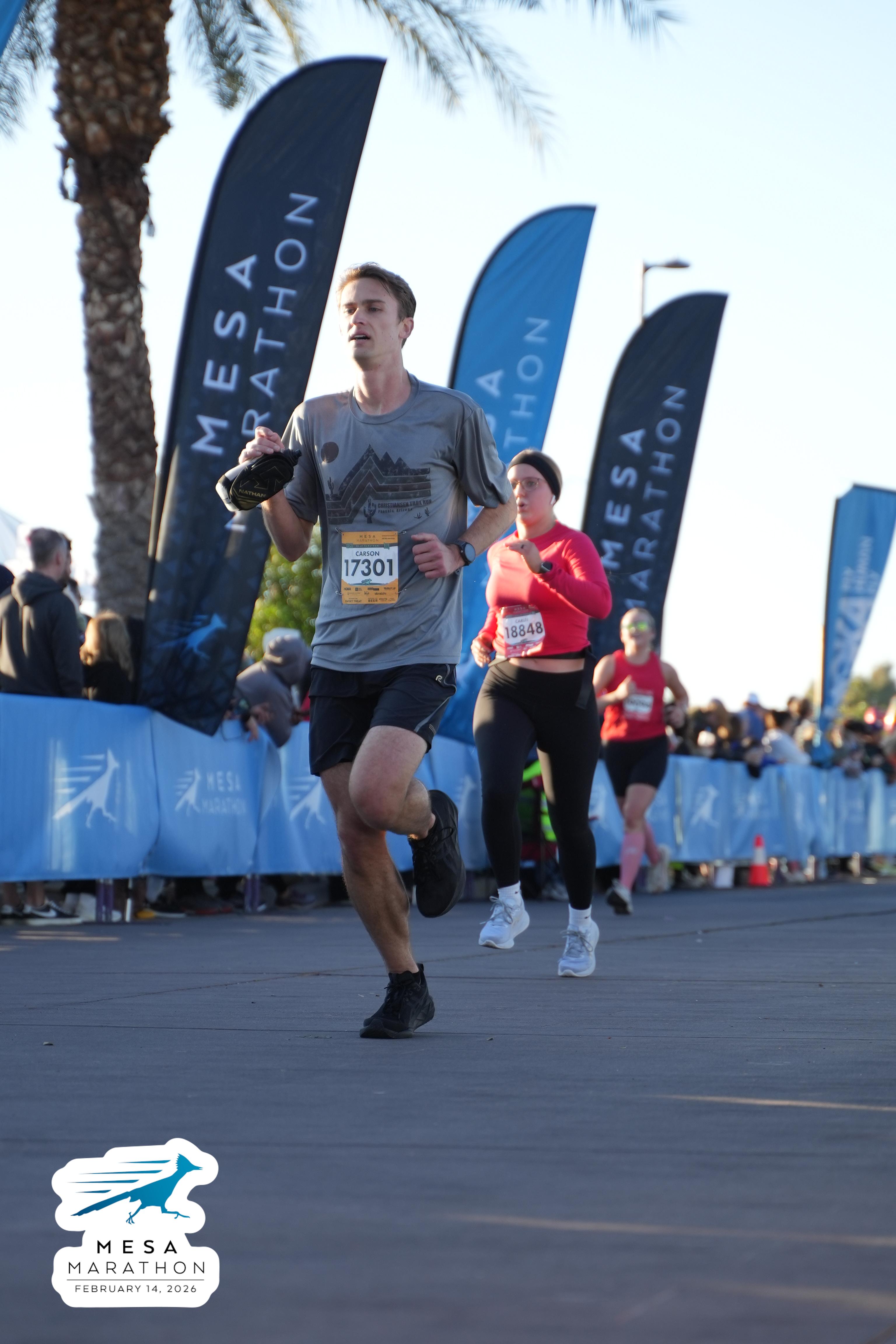 Date: Feb. 14, 2026 Participant: Carson Storey #17301 Race: 2026 Mesa Half Marathon Distance: 13.1 miles
