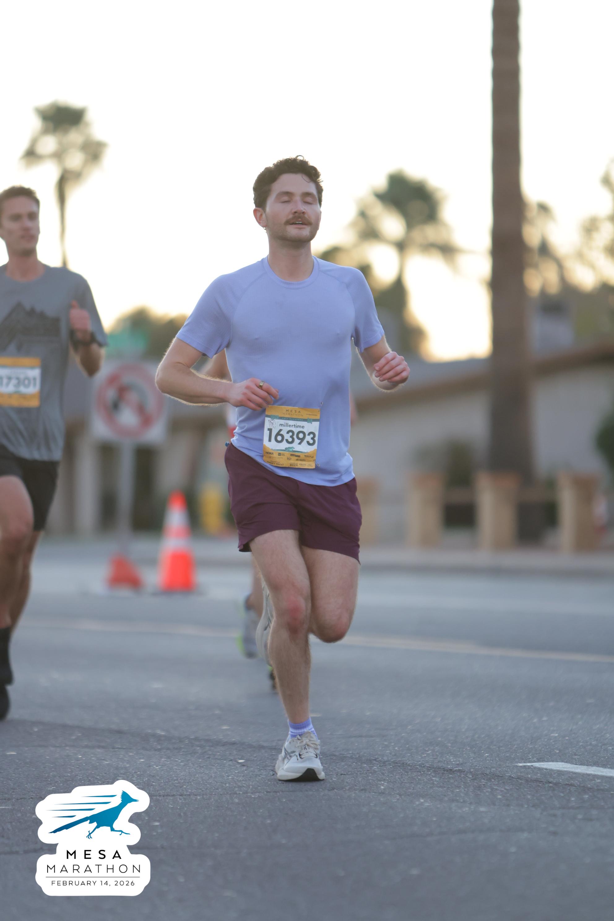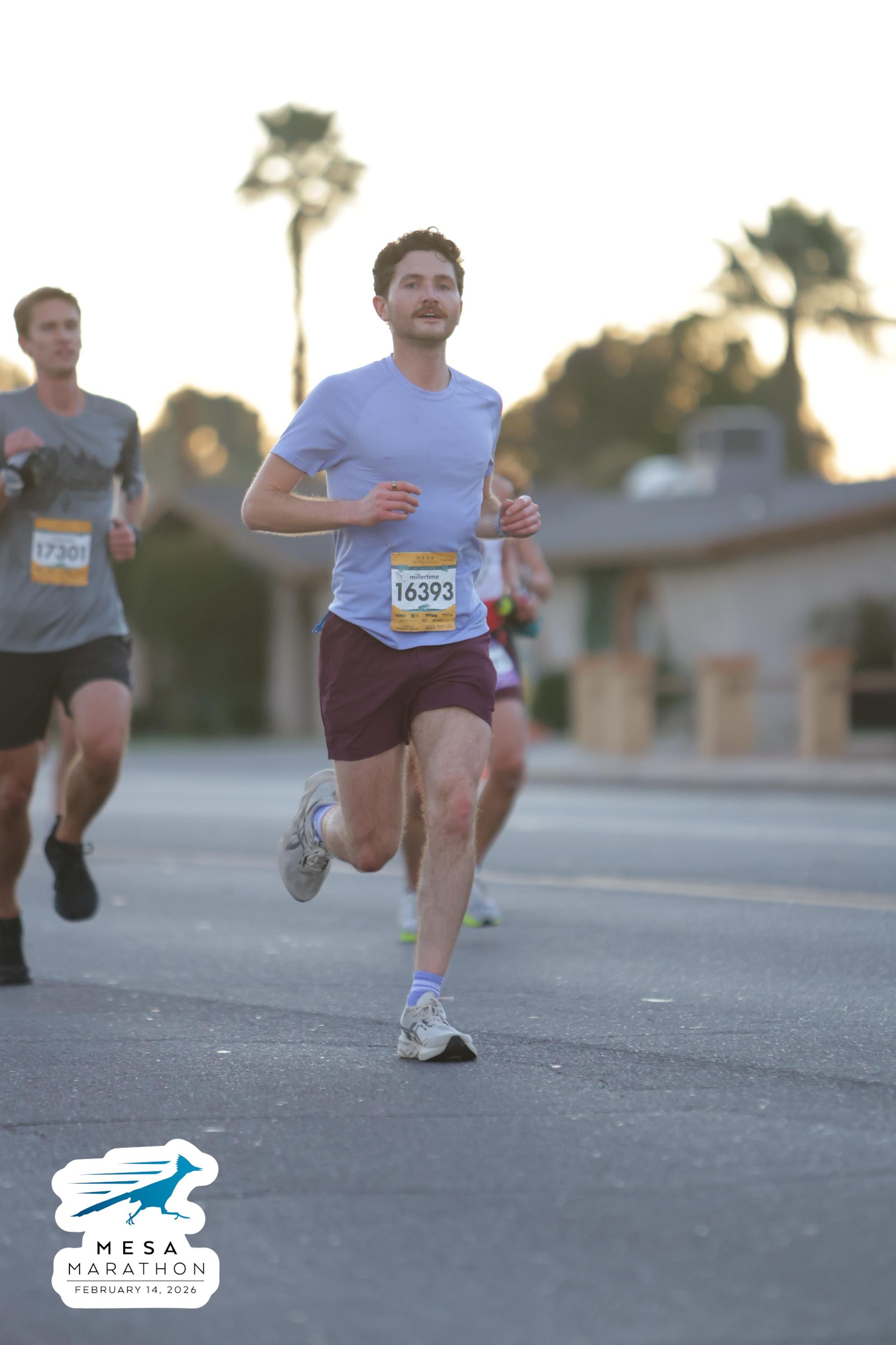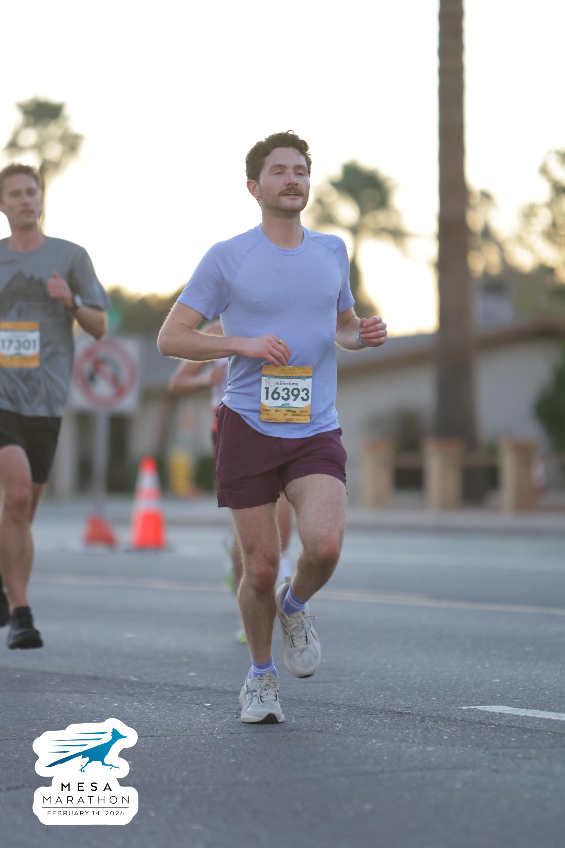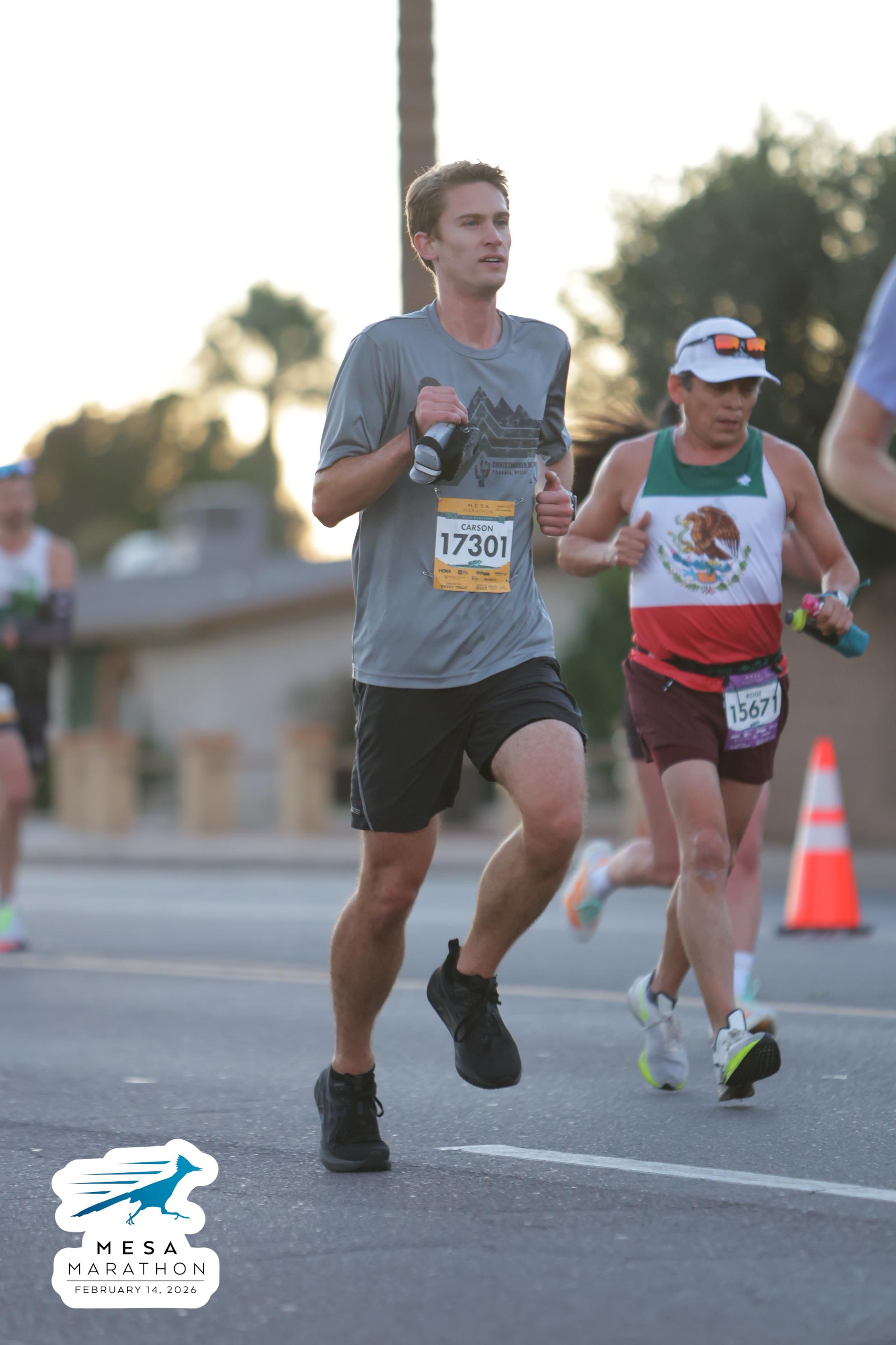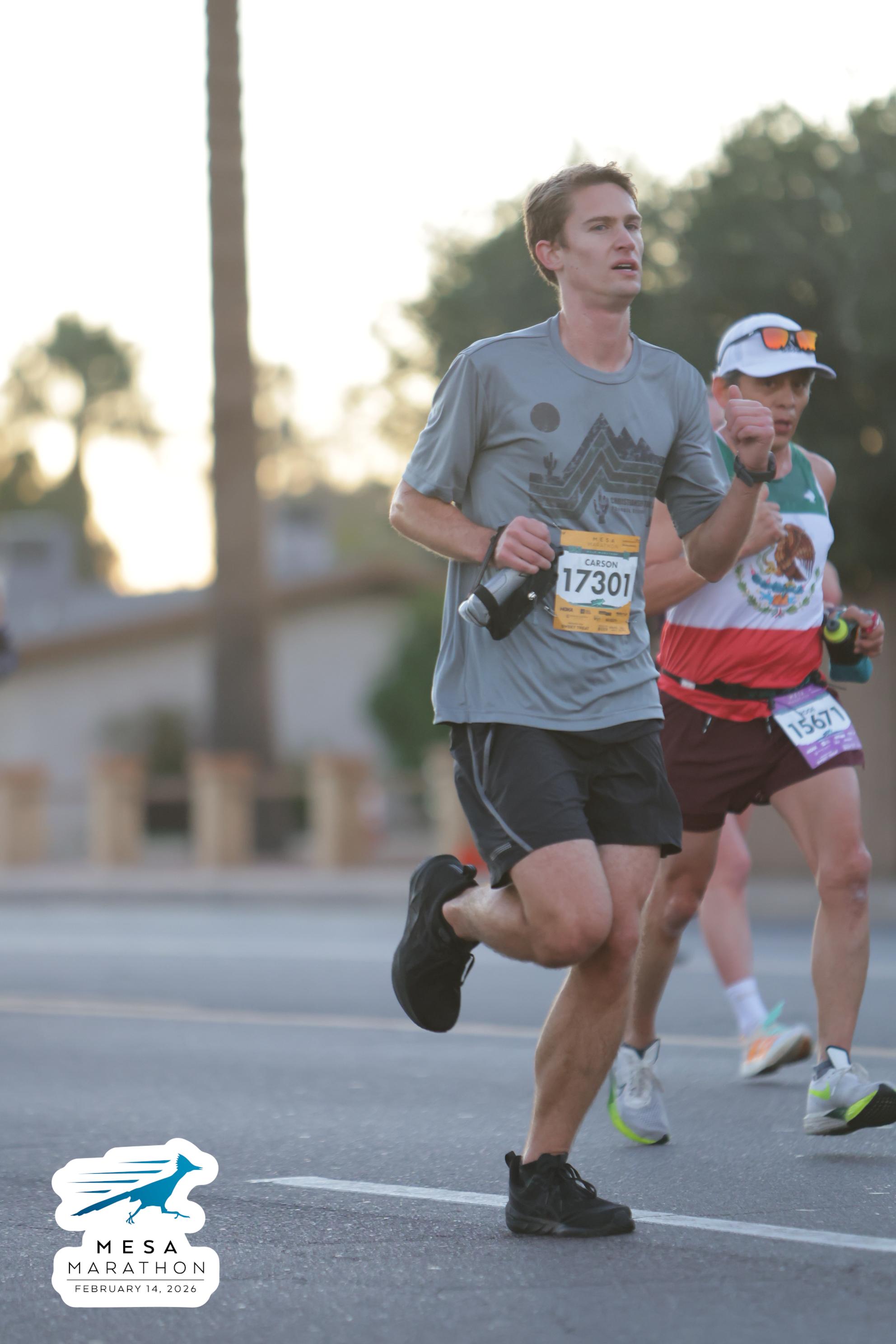 Date: Feb. 14, 2026 Participant: Carson Storey #17301 Race: 2026 Mesa Half Marathon Distance: 13.1 miles