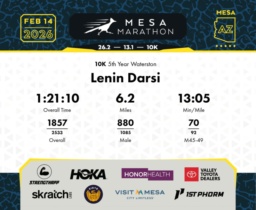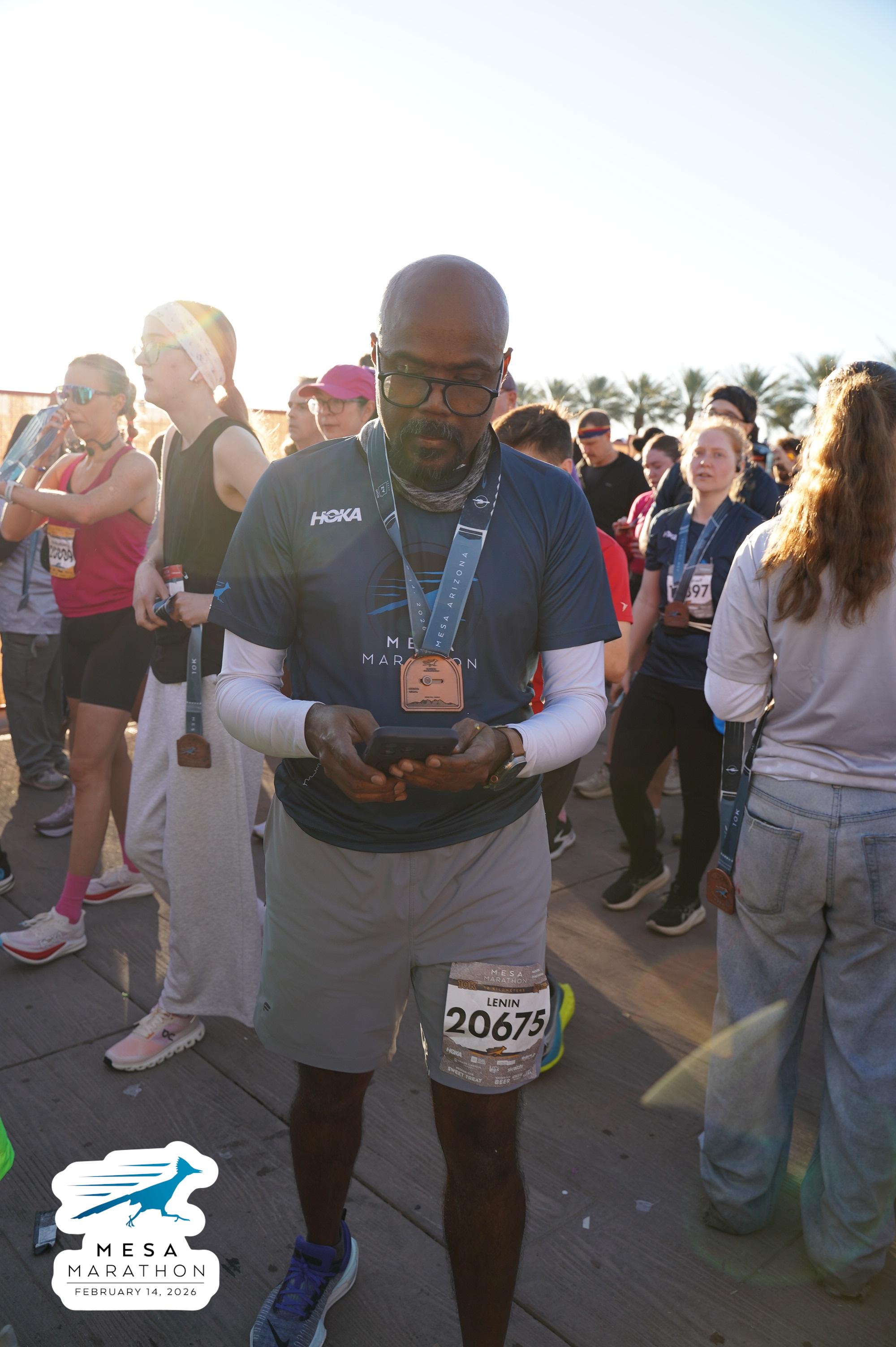 Date: Feb. 14, 2026 Participant: Lenin Darsi #20675 Race: 2026 Mesa 10K Distance: 6.2 miles