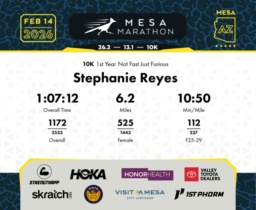 Date: Feb. 14, 2026 Participant: Stephanie Reyes #20999 Race: 2026 Mesa 10K Distance: 6.2 miles
