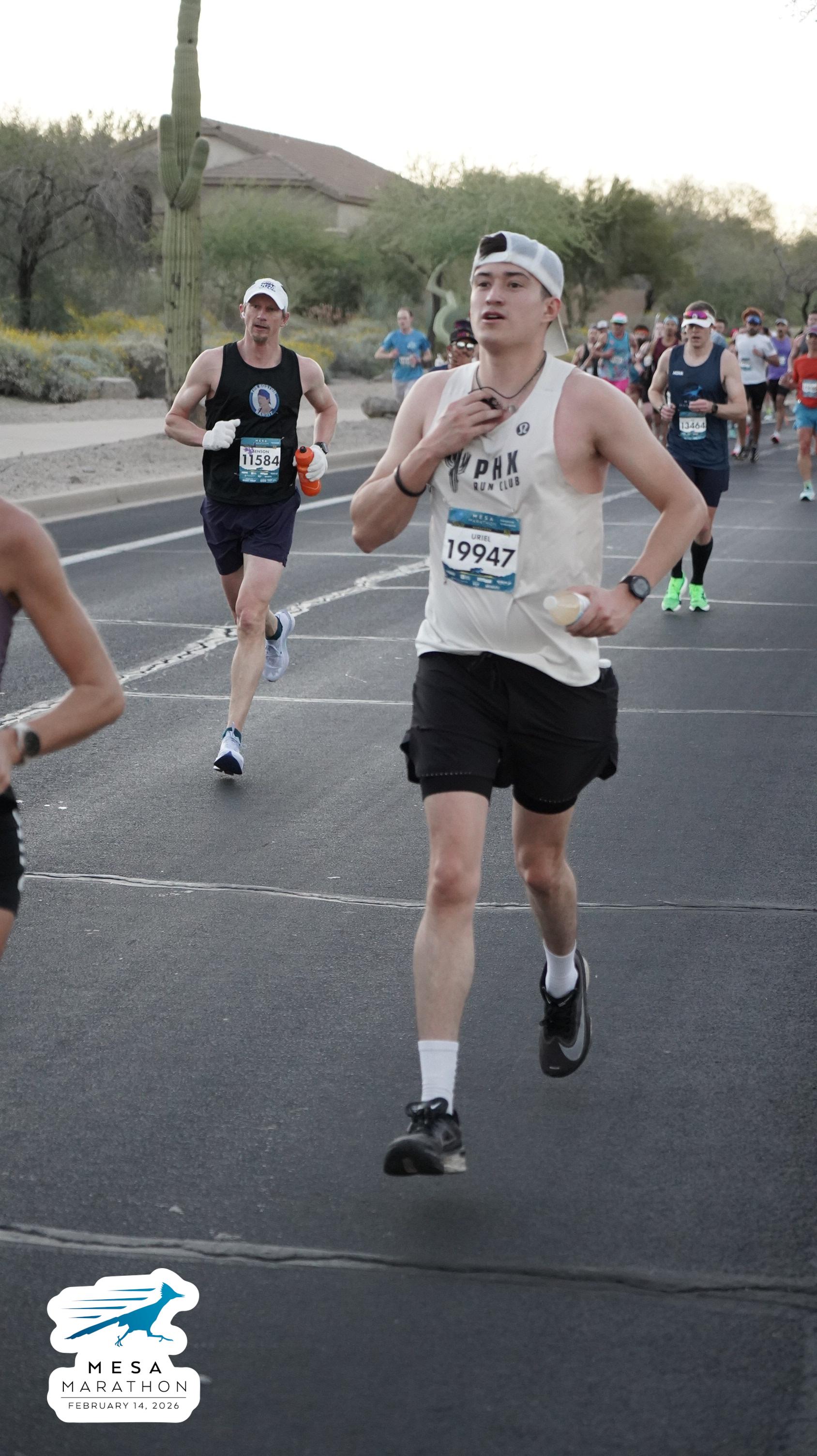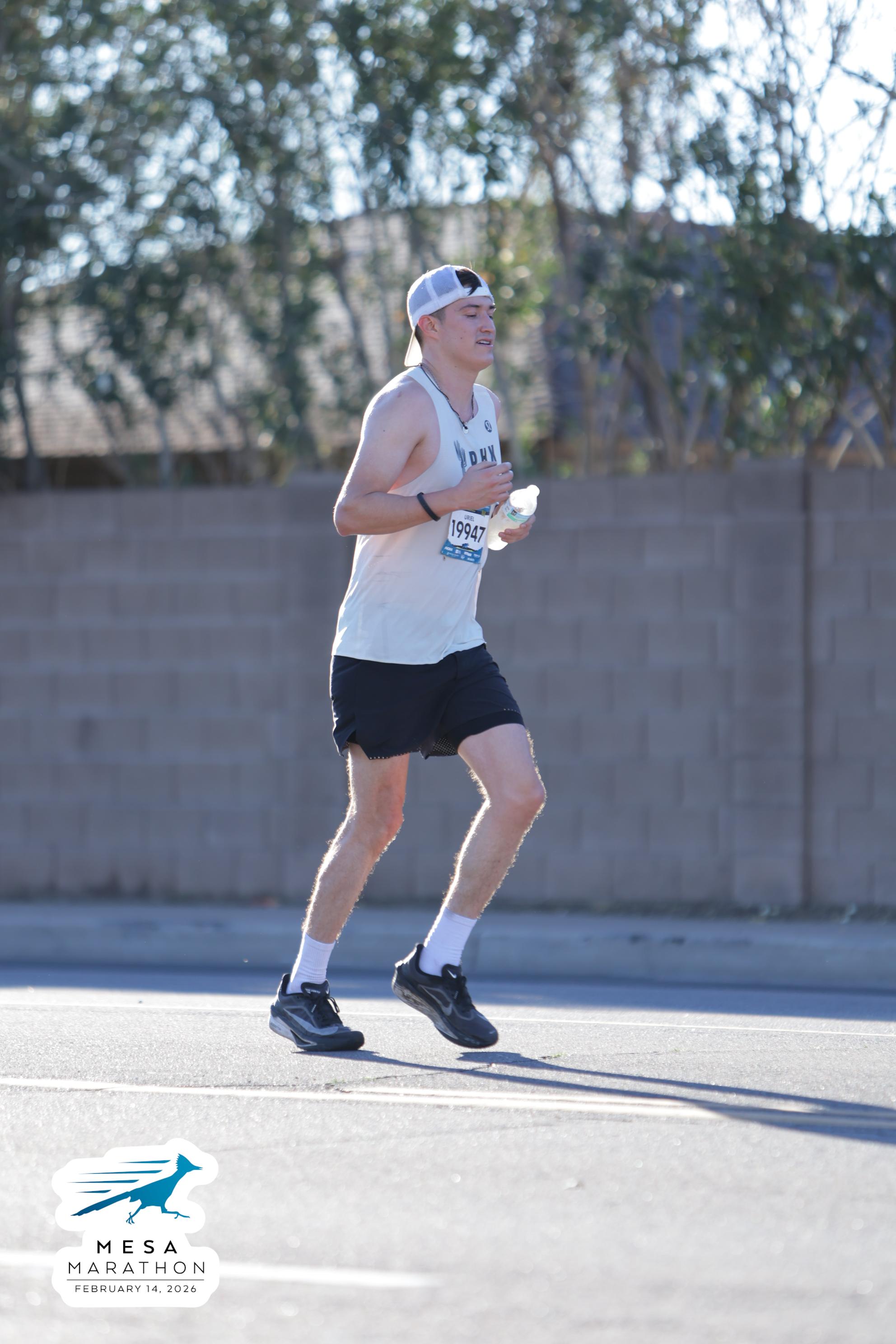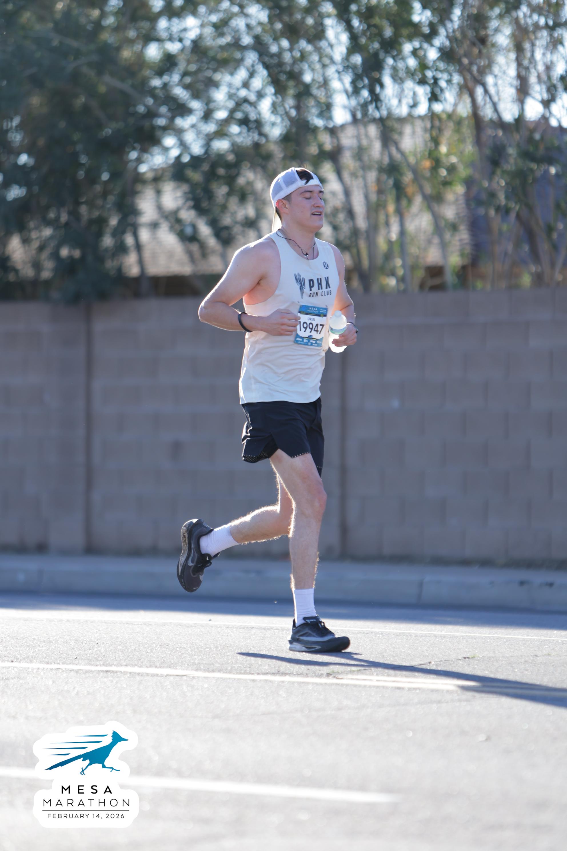 Date: Feb. 14, 2026 Participant: Uriel Valenzuela #19947 Race: 2026 Mesa Marathon Distance: 26.2 miles