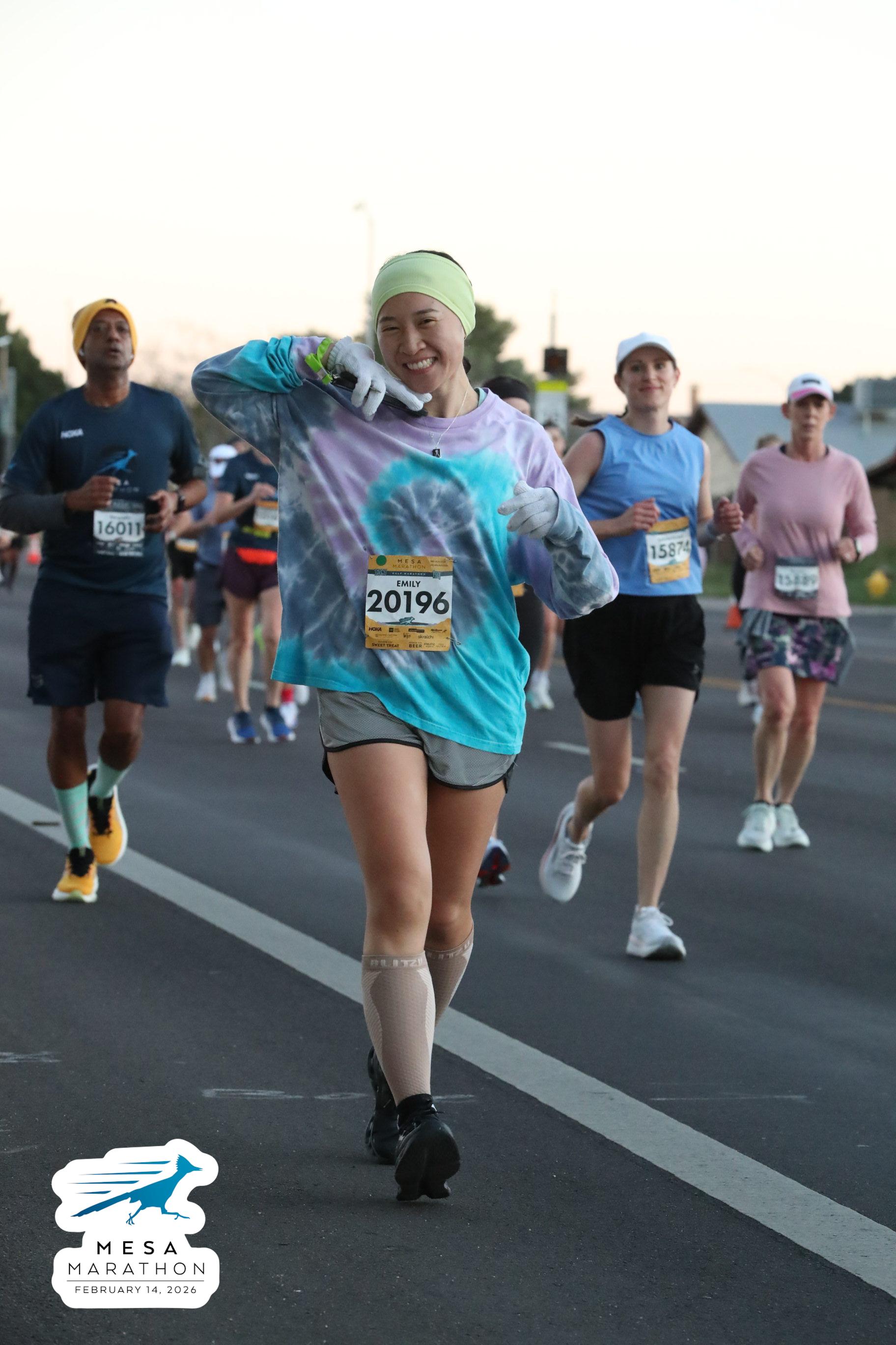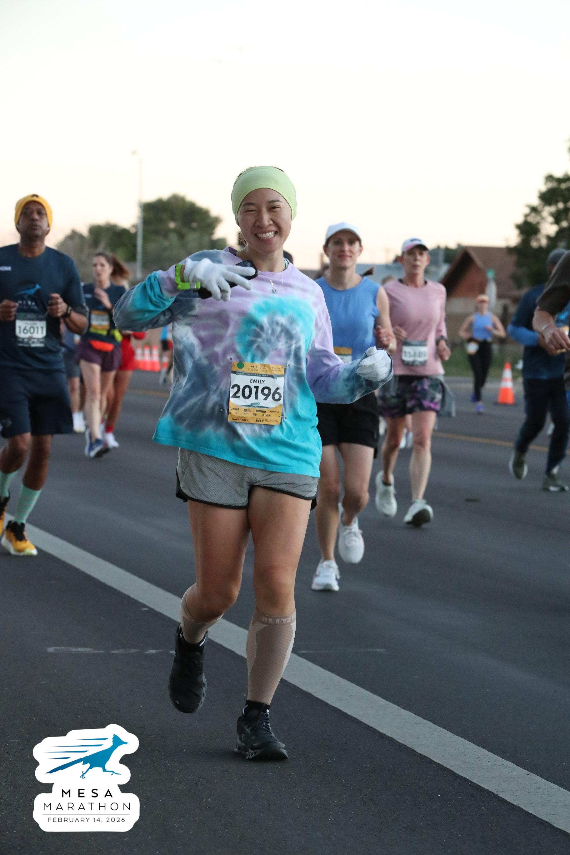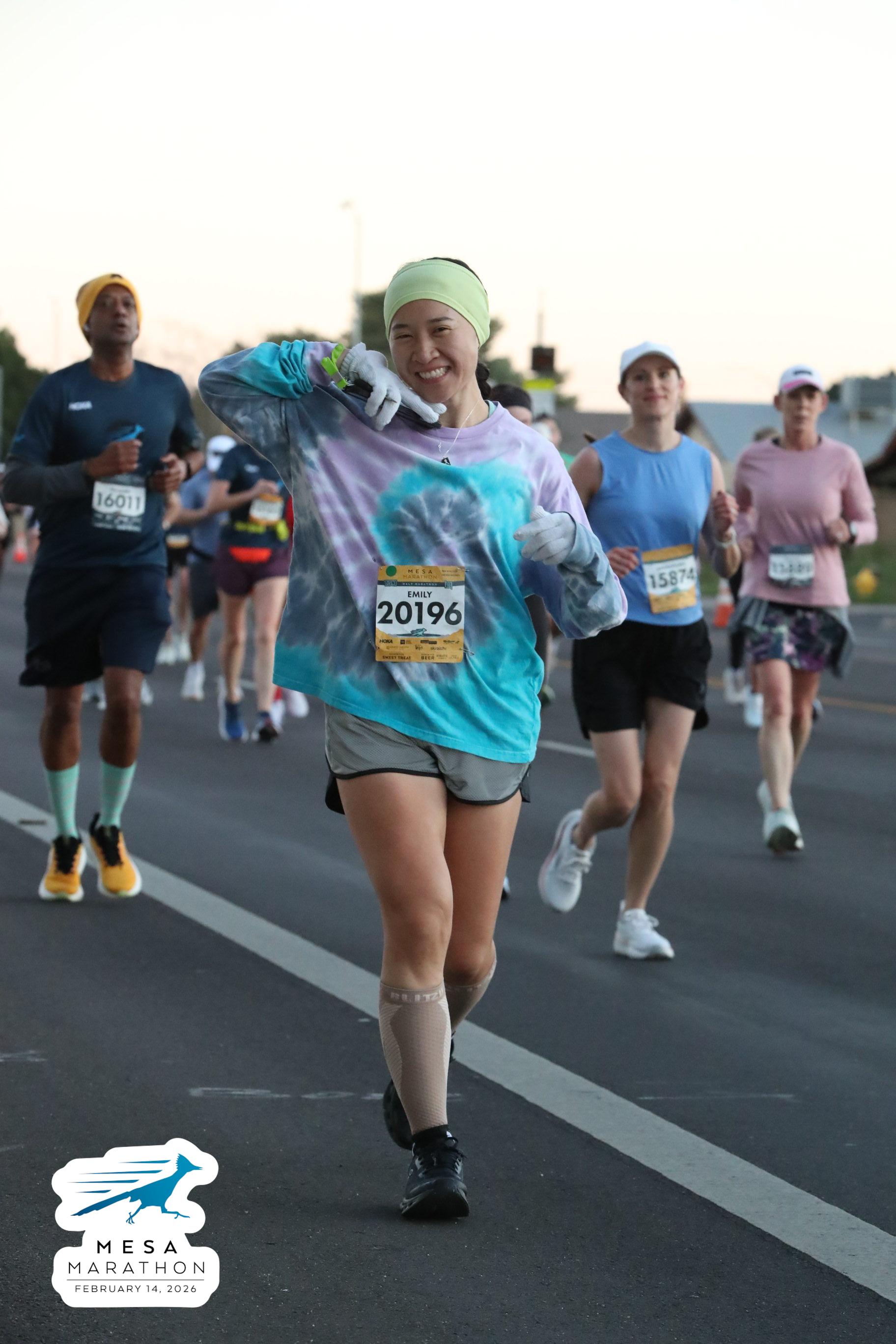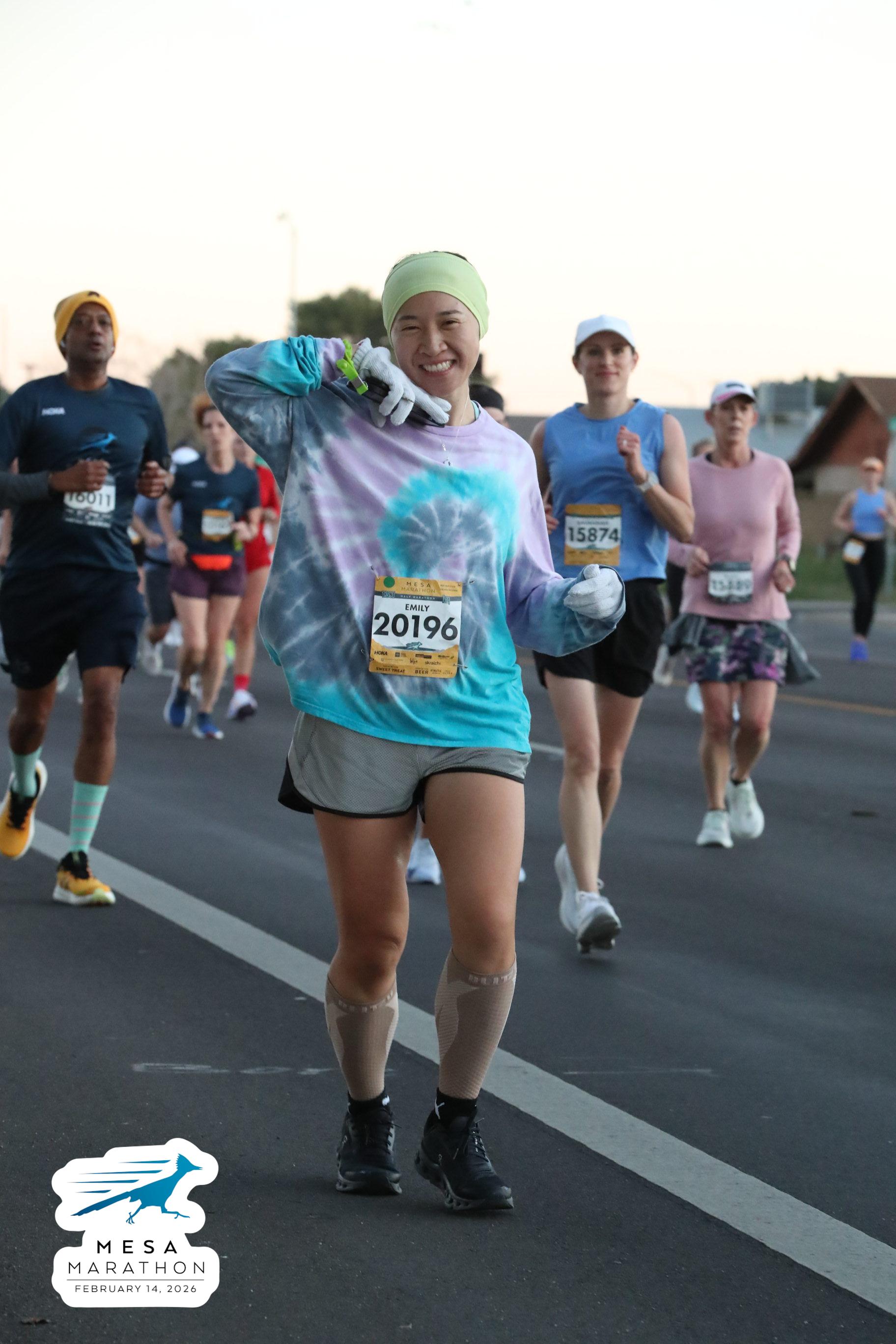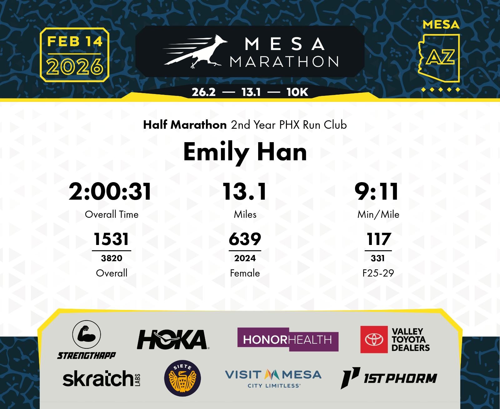 Date: Feb. 14, 2026 Participant: Emily Han #20196 Race: 2026 Mesa Half Marathon Distance: 13.1 miles