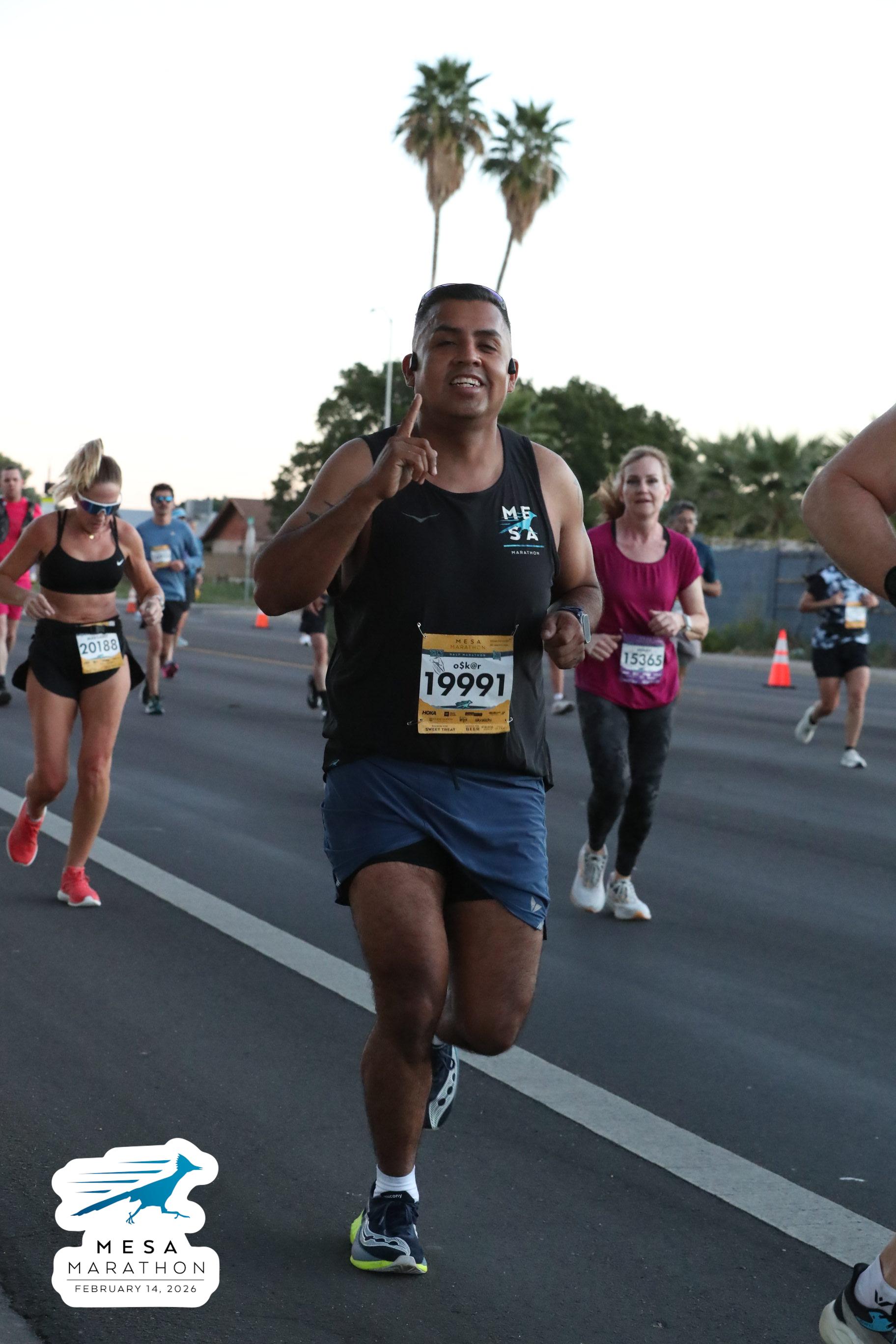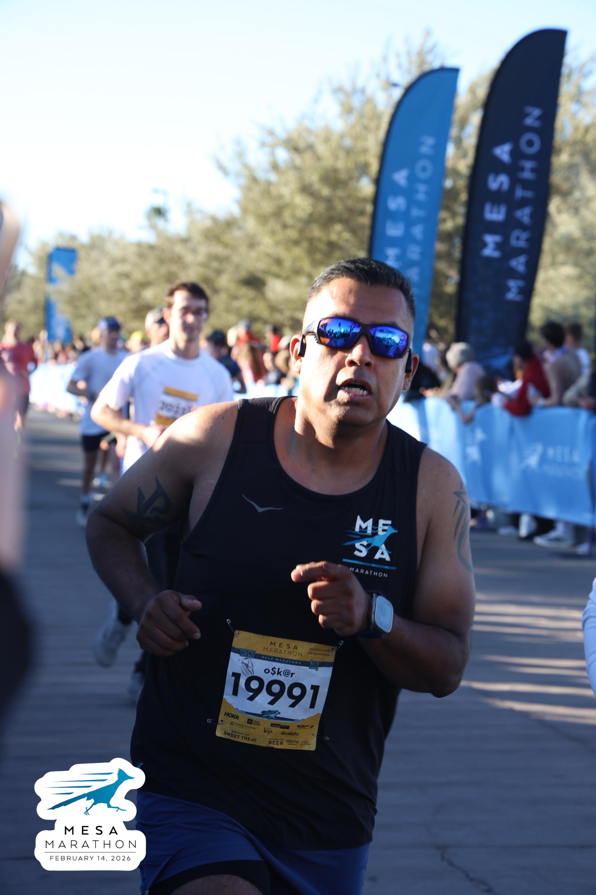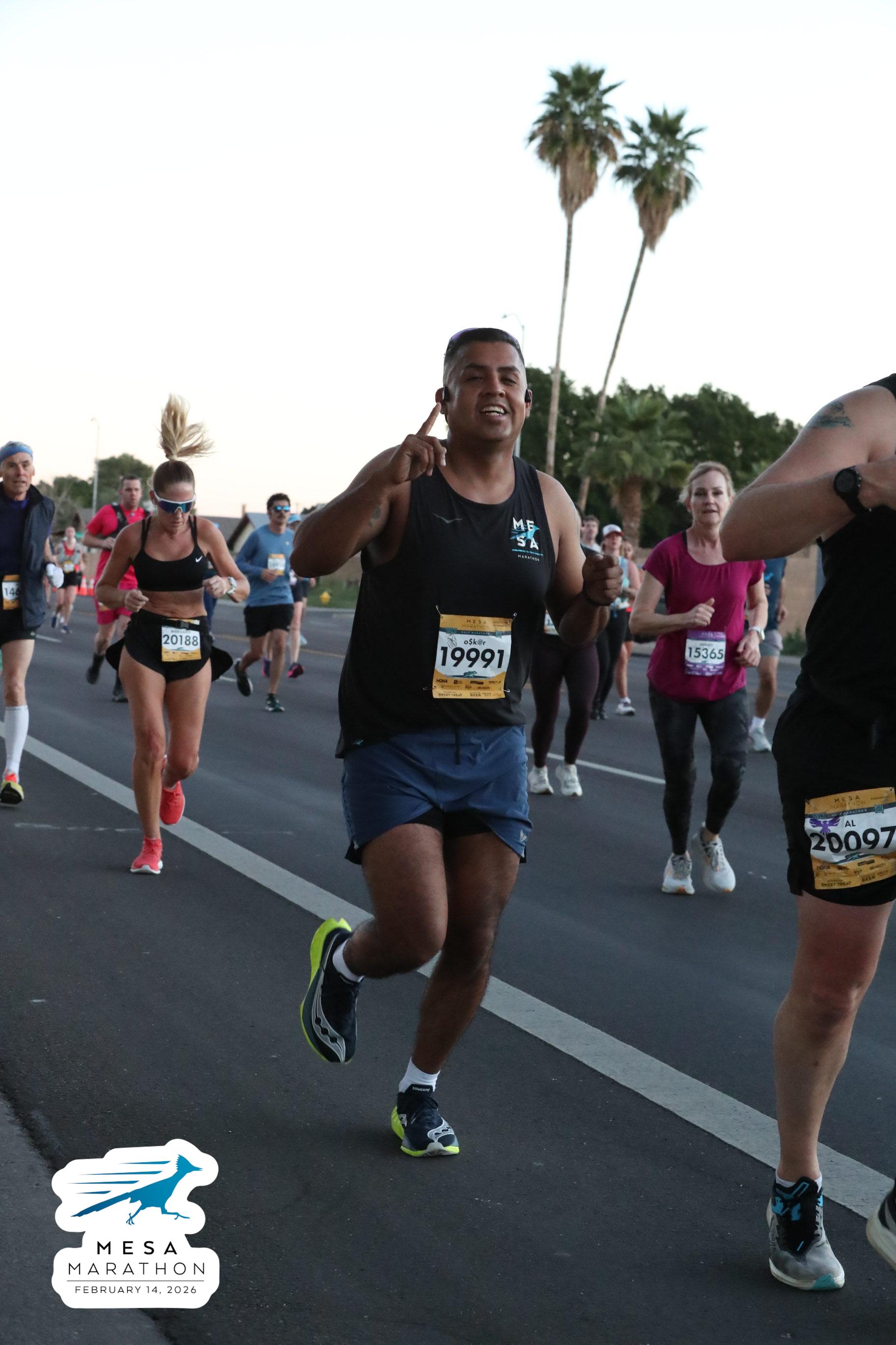 Date: Feb. 14, 2026 Participant: Oscar Anguiano #19991 Race: 2026 Mesa Half Marathon Distance: 13.1 miles