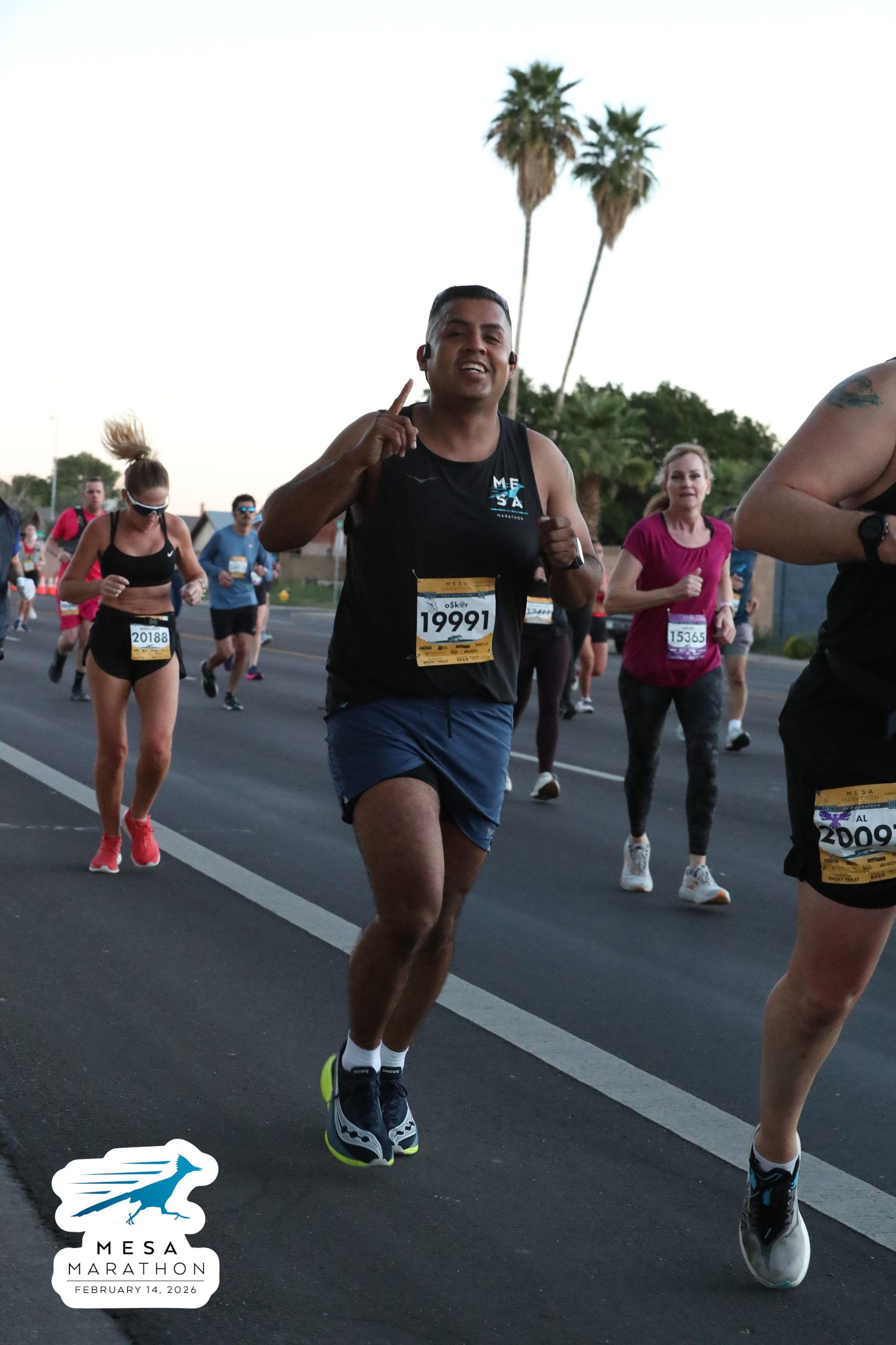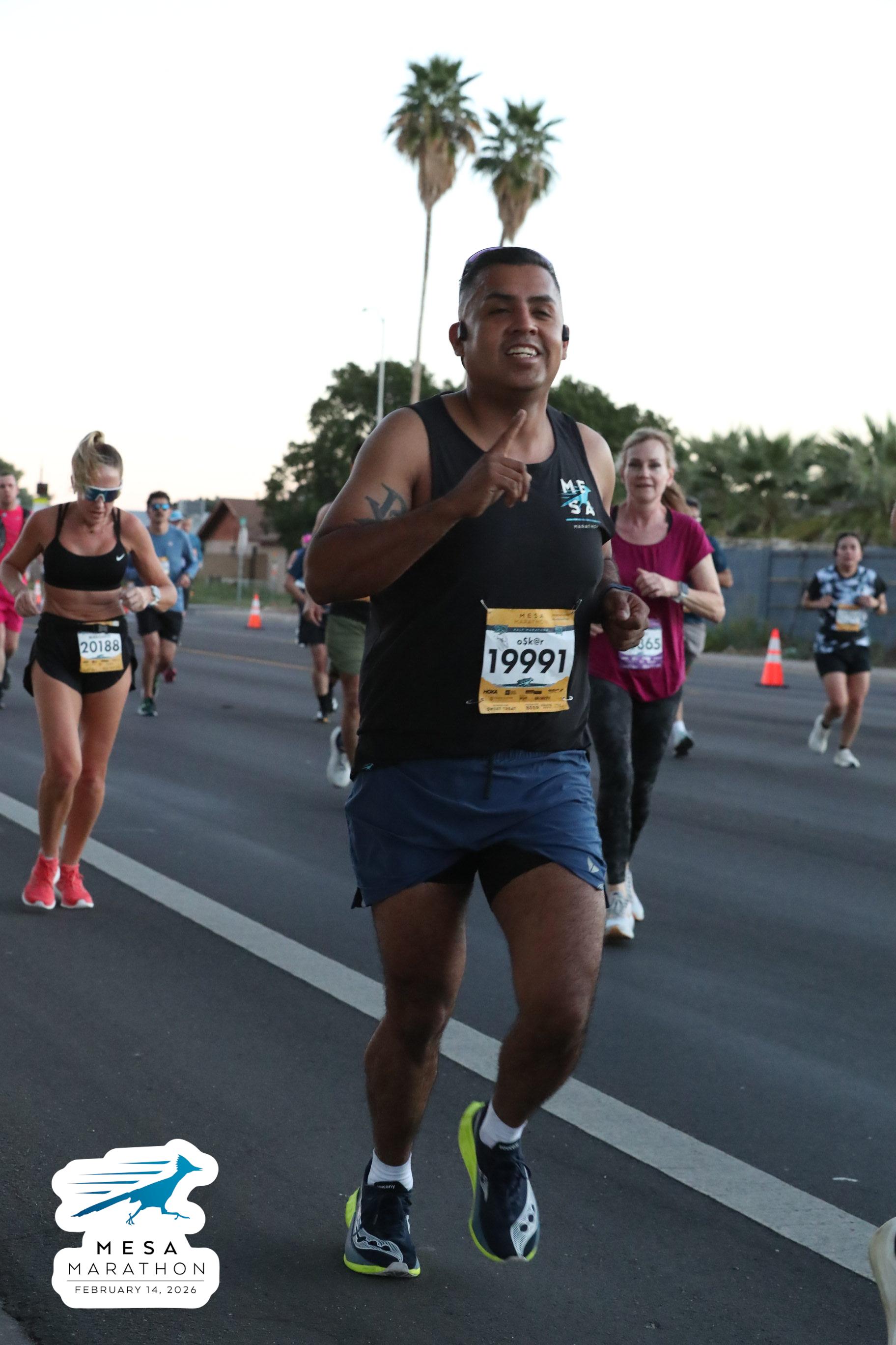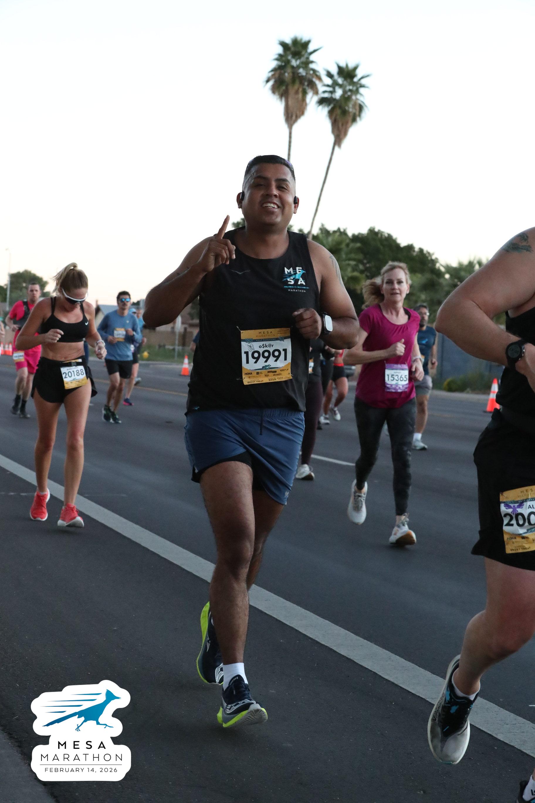 Date: Feb. 14, 2026 Participant: Oscar Anguiano #19991 Race: 2026 Mesa Half Marathon Distance: 13.1 miles